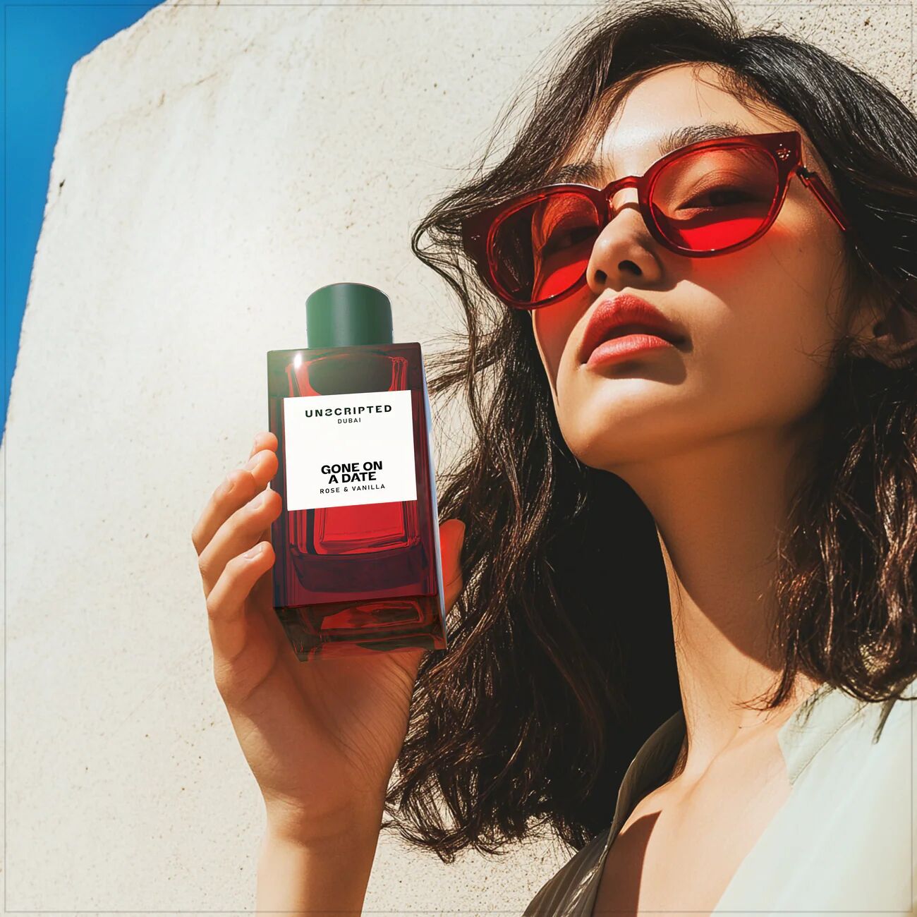 Gone on a Date podle Unscripted je Orientální Floral vůně pro ženy a muže. Toto je nová vůně. Gone on a Date byl/a uveden/a v roce 2025. Vrchní tóny jsou Liči, Bergamot, Rebarbora, Koření a Muškátový oříšek; střední tóny jsouKonvalinka, Pomerančový květ, Damašská růže, Pivoňka a Kadidlo ; základní tóny jsou Bílé pižmo, Cedr, Jantar (ambra), Agarové dřevo (oud), Santalové dřevo a Vanilka.