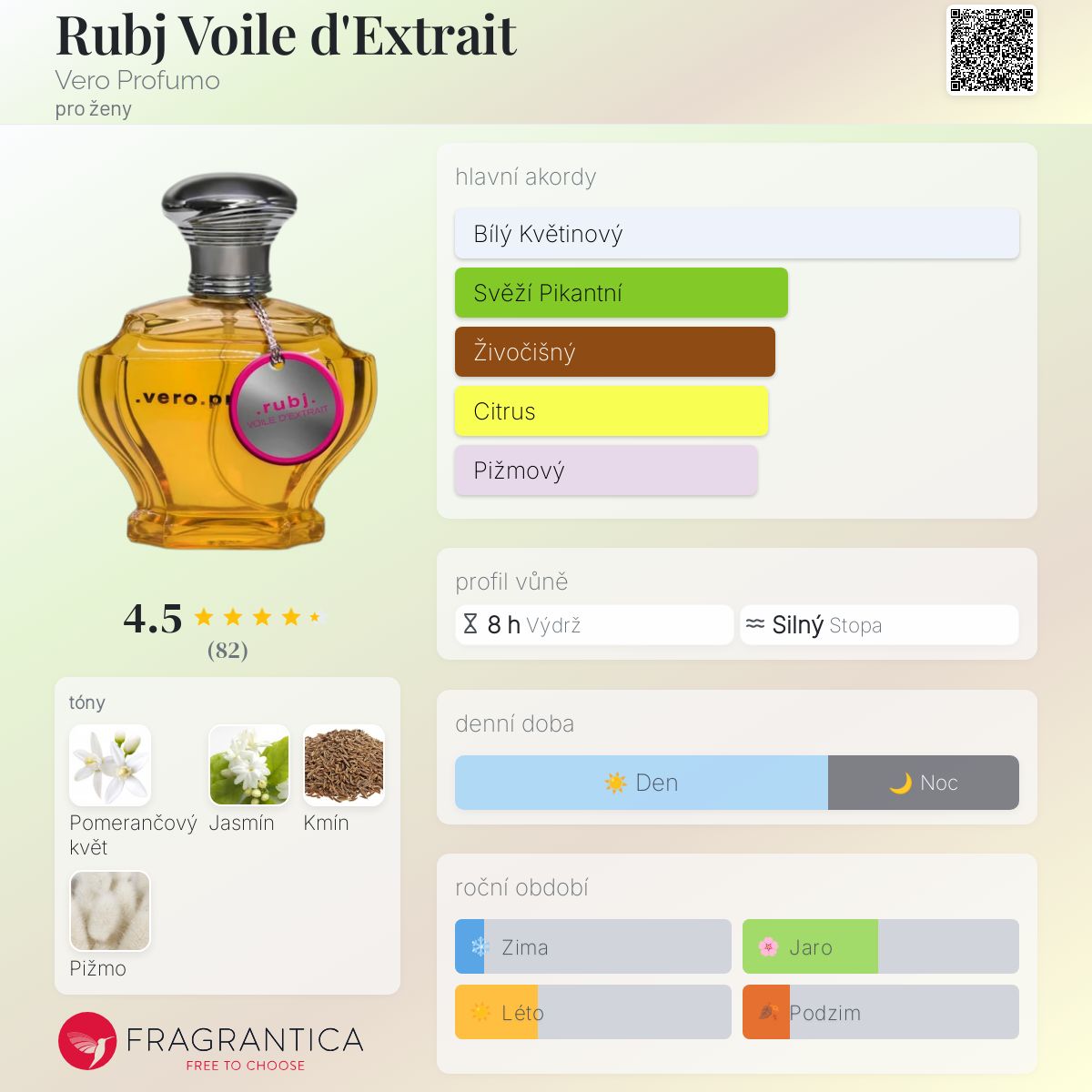 Rubj Voile d'Extrait podle Vero Profumo je Orientální Floral vůně pro ženy. Rubj Voile d'Extrait byl/a uveden/a v roce 2013. "Nosem" za touto vůní je Vero Kern.