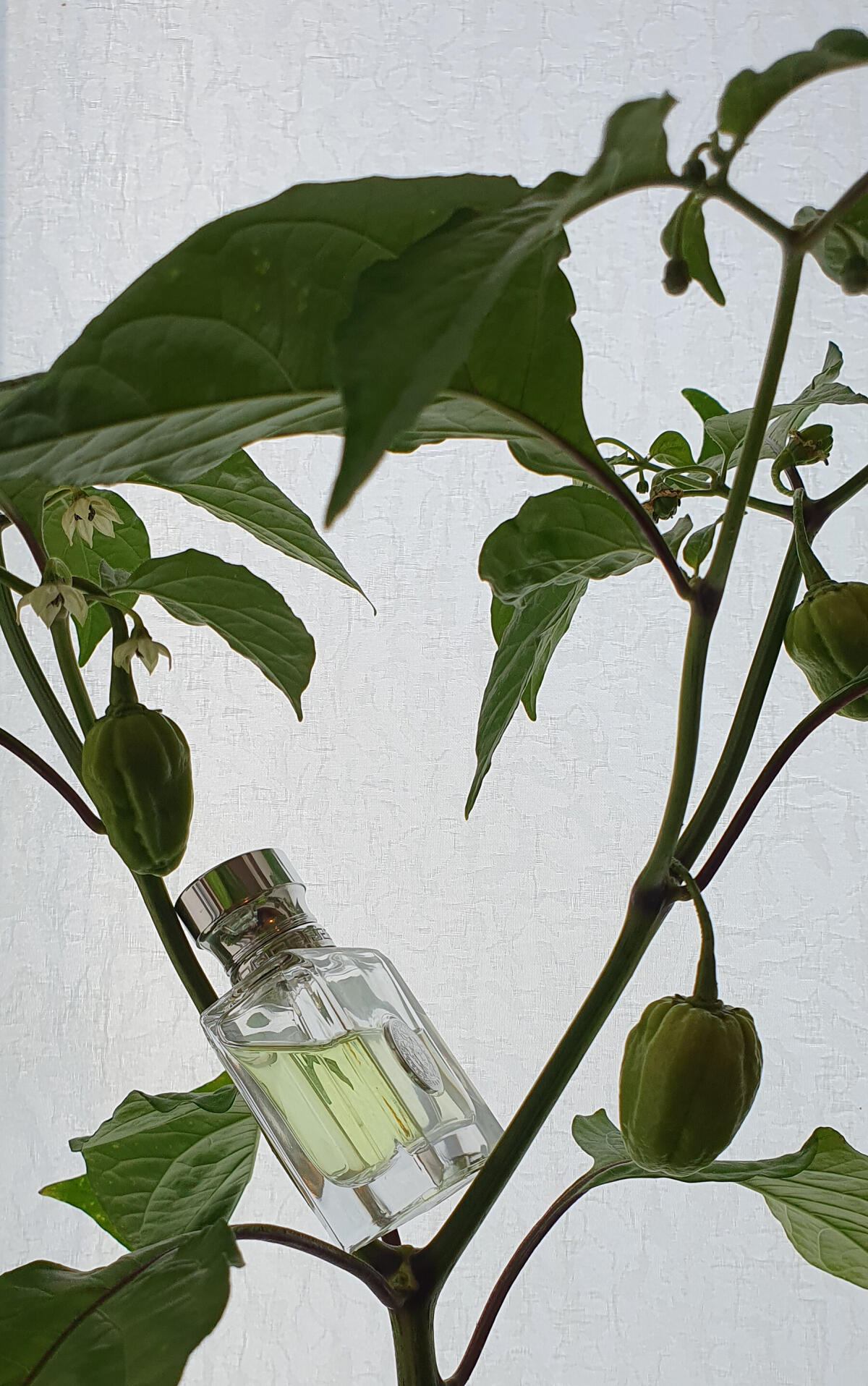 Citrusová toaletní voda s dětským, ale ne naivní pocitem prádlového pižma, klidné a uvolněné citrusy s dokonalým bodem kyselosti/sladkosti, pak se střídá s chladným dřevem, které jí dodává naprosto unisexovou podporu. Líbí se mi také jistá sladká myrtová příchuť, asi je to mix lilie, fíku, olivy a narcisu, který necítíte v celé jeho plnosti, ale jako neurčitou formu sladkosti mezi květinovou, bylinkovou a božsky pikantní.