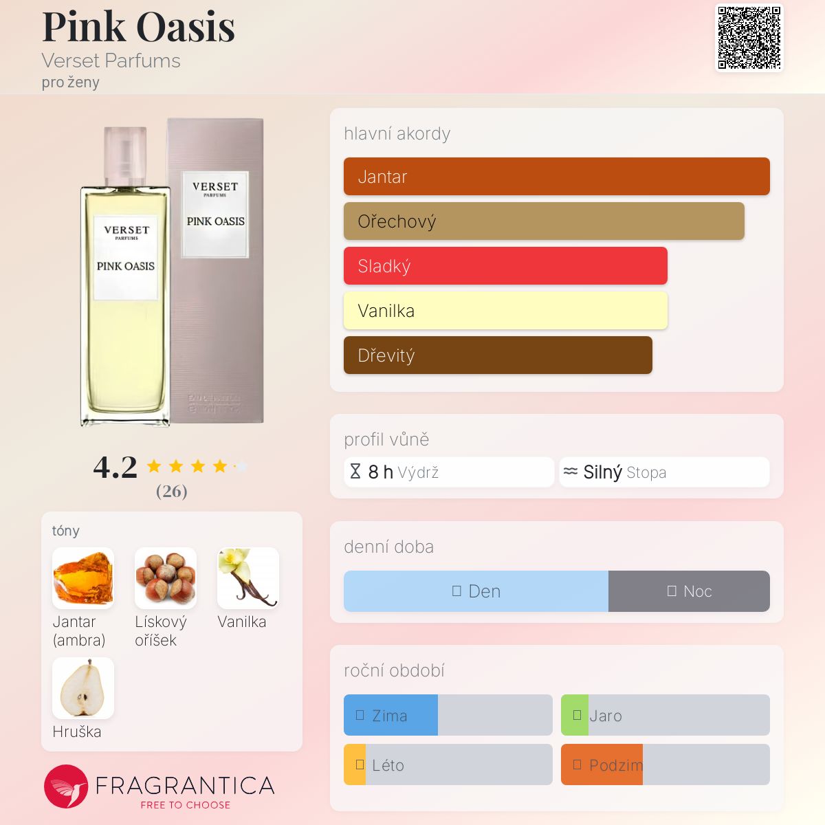 Pink Oasis podle Verset Parfums je vůně pro ženy. Toto je nová vůně. Pink Oasis byl/a uveden/a v roce 2025.