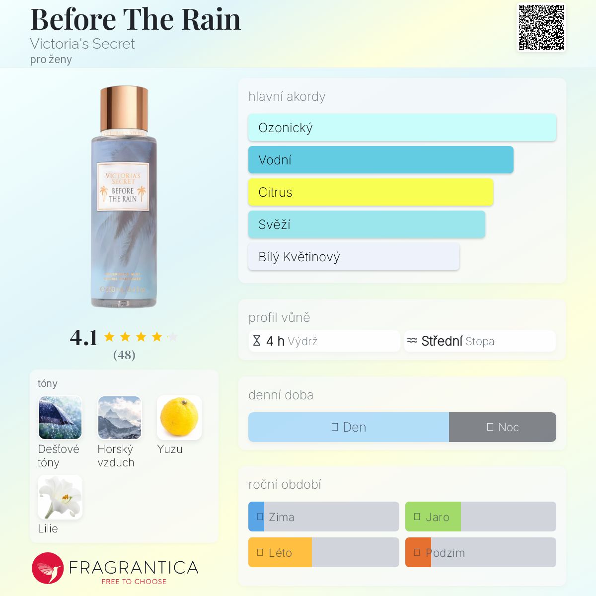 Before The Rain podle Victoria's Secret je Floral vůně pro ženy. Before The Rain byl/a uveden/a v roce 2021.