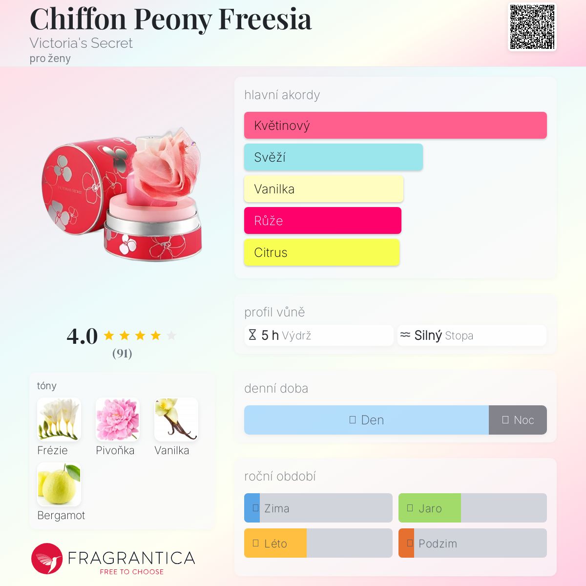 Chiffon Peony Freesia podle Victoria's Secret je Floral vůně pro ženy. Chiffon Peony Freesia byl/a uveden/a v roce 2010.
