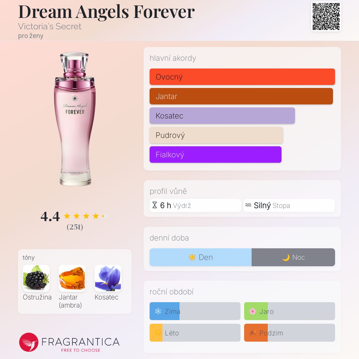 Dream Angels Forever podle Victoria's Secret je Floral Fruity vůně pro ženy. Dream Angels Forever byl/a uveden/a v roce 2011. Vrchní tón je Ostružina ; střední tón jeKosatec ; základní tón je Jantar (ambra).