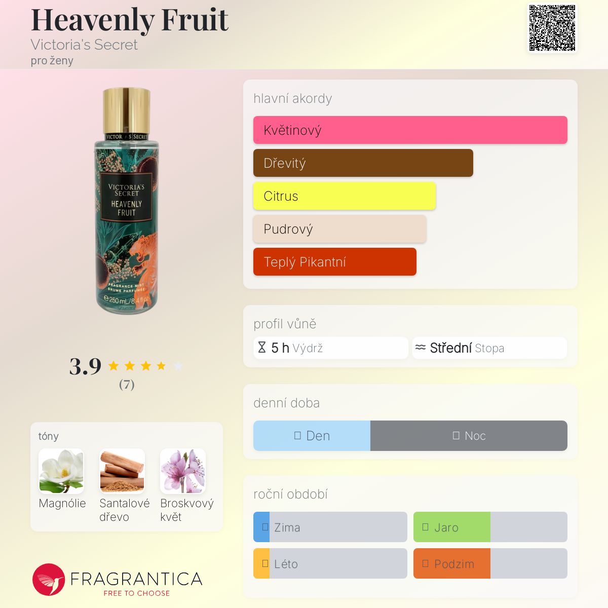 Heavenly Fruit podle Victoria's Secret je Floral Fruity vůně pro ženy. Heavenly Fruit byl/a uveden/a v roce 2022.