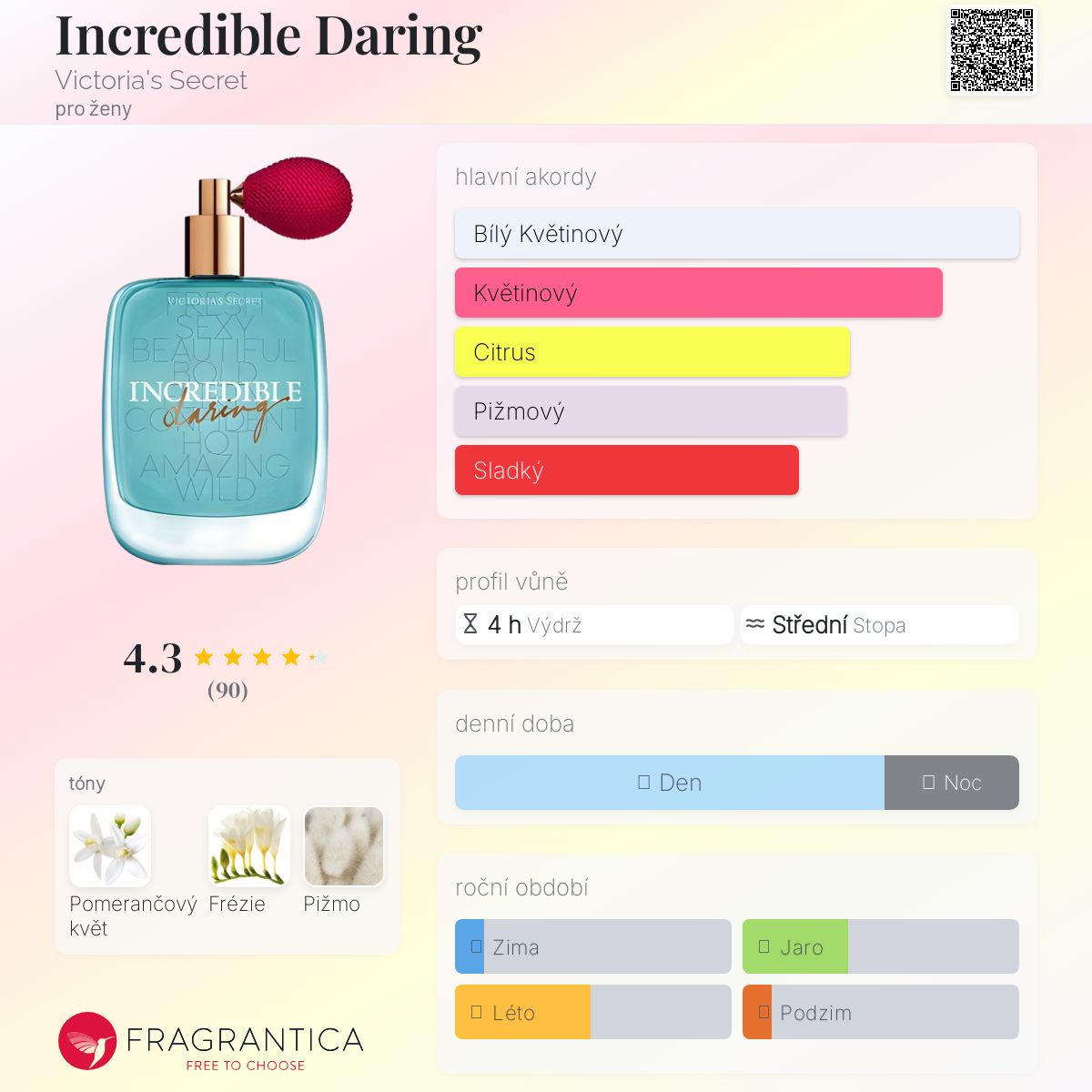 Incredible Daring podle Victoria's Secret je Floral vůně pro ženy. Incredible Daring byl/a uveden/a v roce 2012.