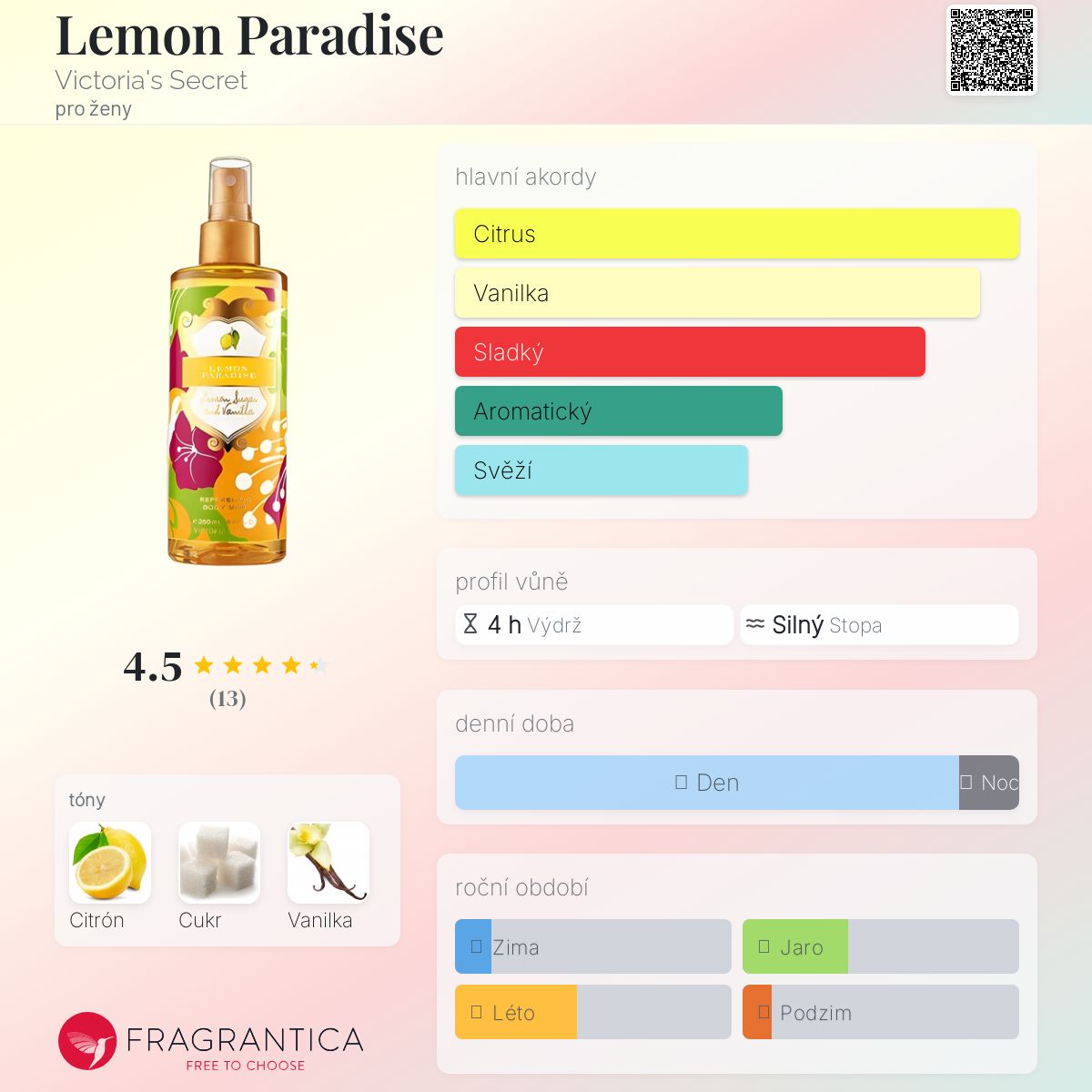 Lemon Paradise podle Victoria's Secret je Citrus vůně pro ženy. Lemon Paradise byl/a uveden/a v roce 2010.