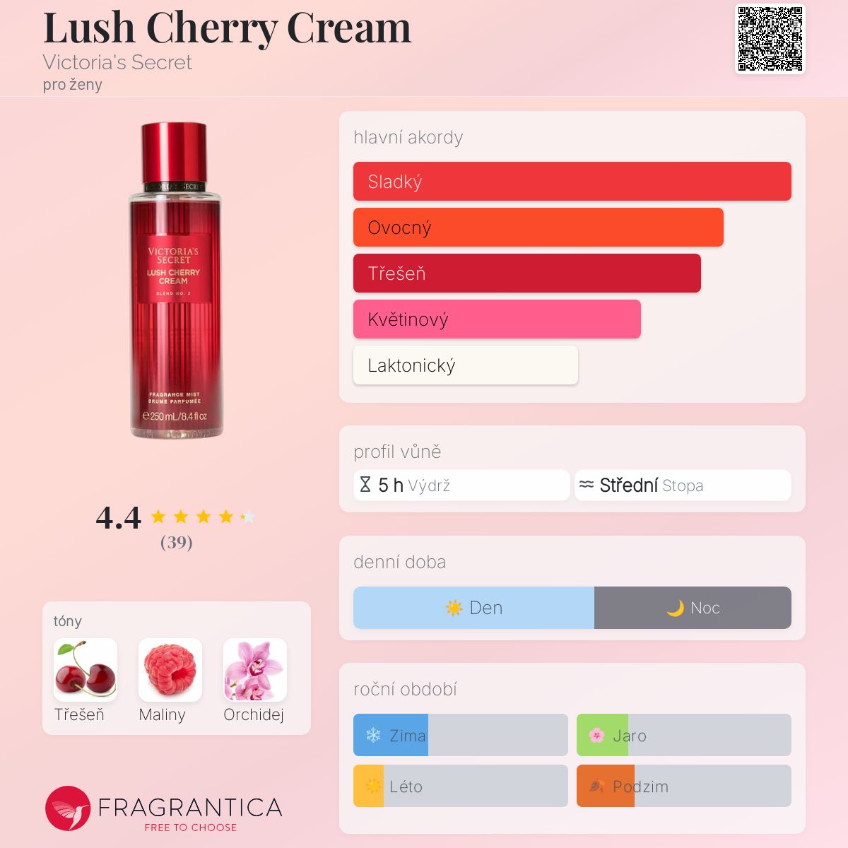 Lush Cherry Cream podle Victoria's Secret je Floral Fruity vůně pro ženy. Toto je nová vůně. Lush Cherry Cream byl/a uveden/a v roce 2024.
