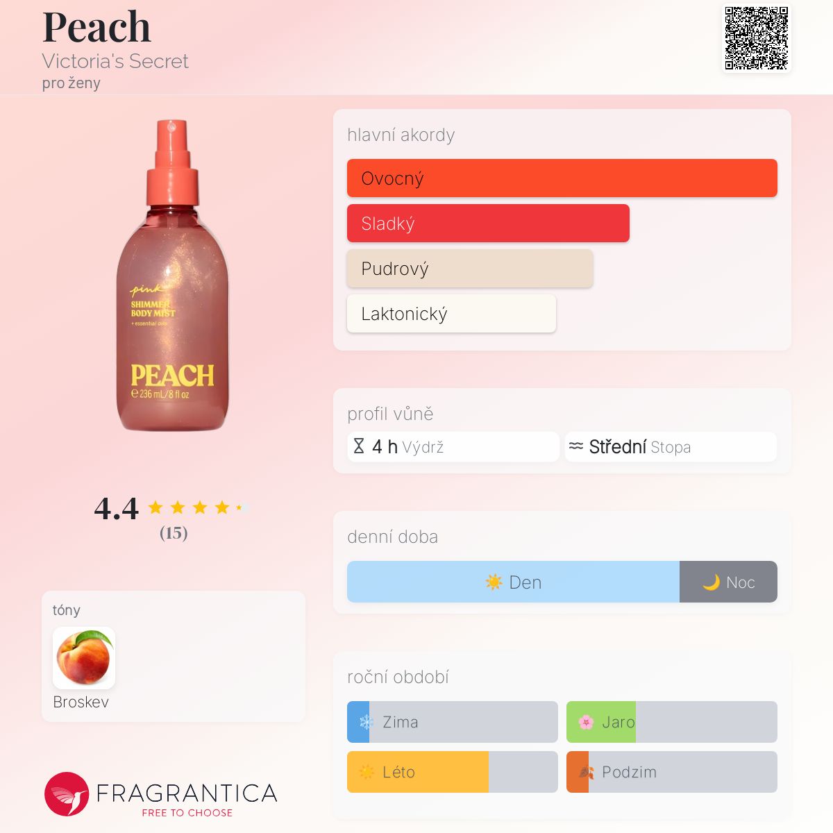 Peach podle Victoria's Secret je Aromatic Fruity vůně pro ženy. Toto je nová vůně. Peach byl/a uveden/a v roce 2024.