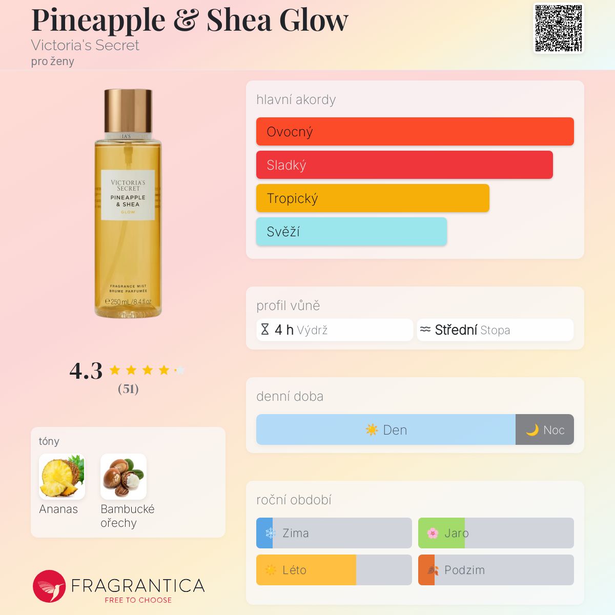 Pineapple & Shea Glow podle Victoria's Secret je Aromatic Fruity vůně pro ženy. Toto je nová vůně. Pineapple & Shea Glow byl/a uveden/a v roce 2024.