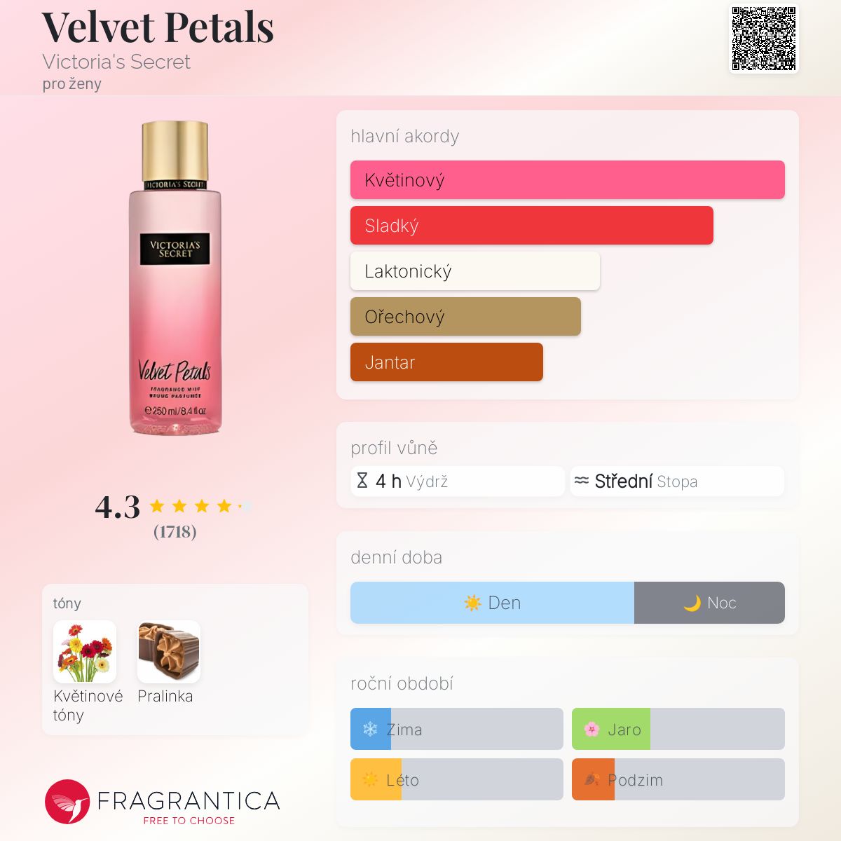 Velvet Petals podle Victoria's Secret je Floral vůně pro ženy. Velvet Petals byl/a uveden/a v roce 2019. základní tóny jsou Květinové tóny a Pralinka.