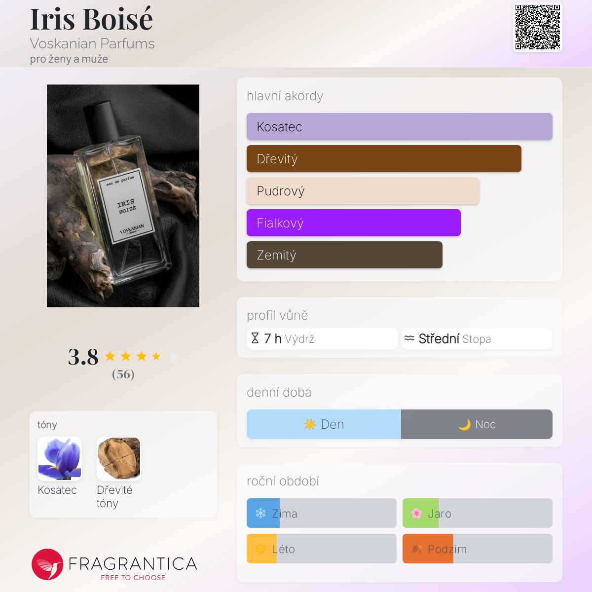 Iris Boisé podle Voskanian Parfums je Woody Floral Musk vůně pro ženy a muže. Iris Boisé byl/a uveden/a v roce 2021. "Nosem" za touto vůní je Tsovak Voskanian.