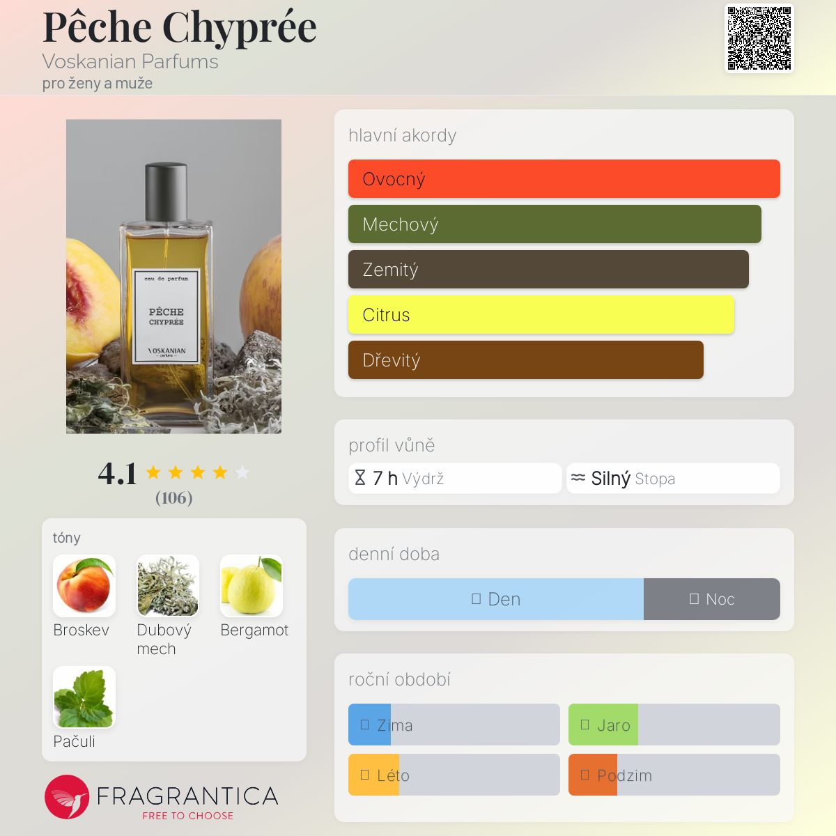 Pêche Chyprée podle Voskanian Parfums je Chypre Fruity vůně pro ženy a muže. Pêche Chyprée byl/a uveden/a v roce 2021. "Nosem" za touto vůní je Tsovak Voskanian.