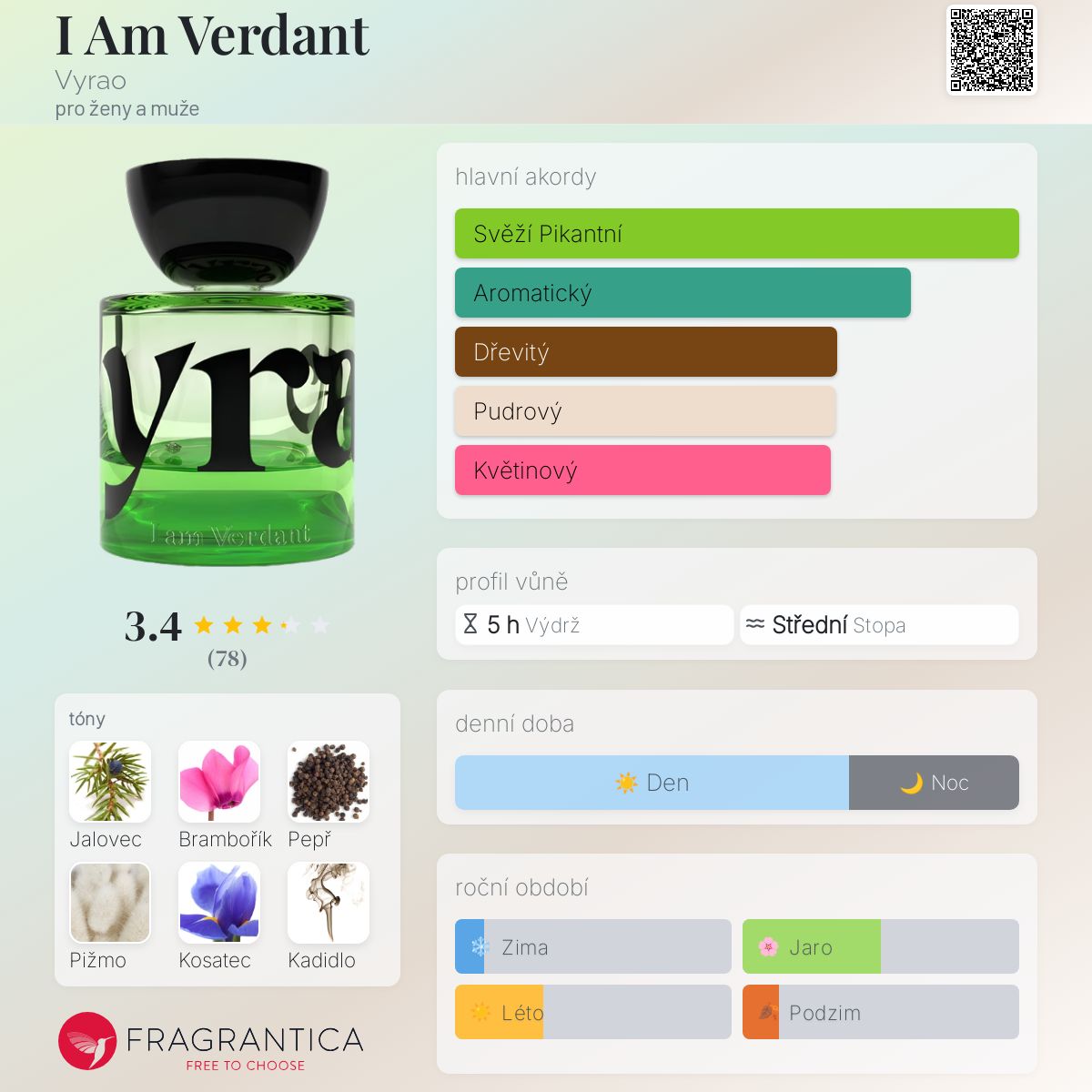 I Am Verdant podle Vyrao je Floral Green vůně pro ženy a muže. I Am Verdant byl/a uveden/a v roce 2021. "Nosem" za touto vůní je Lyn Harris.