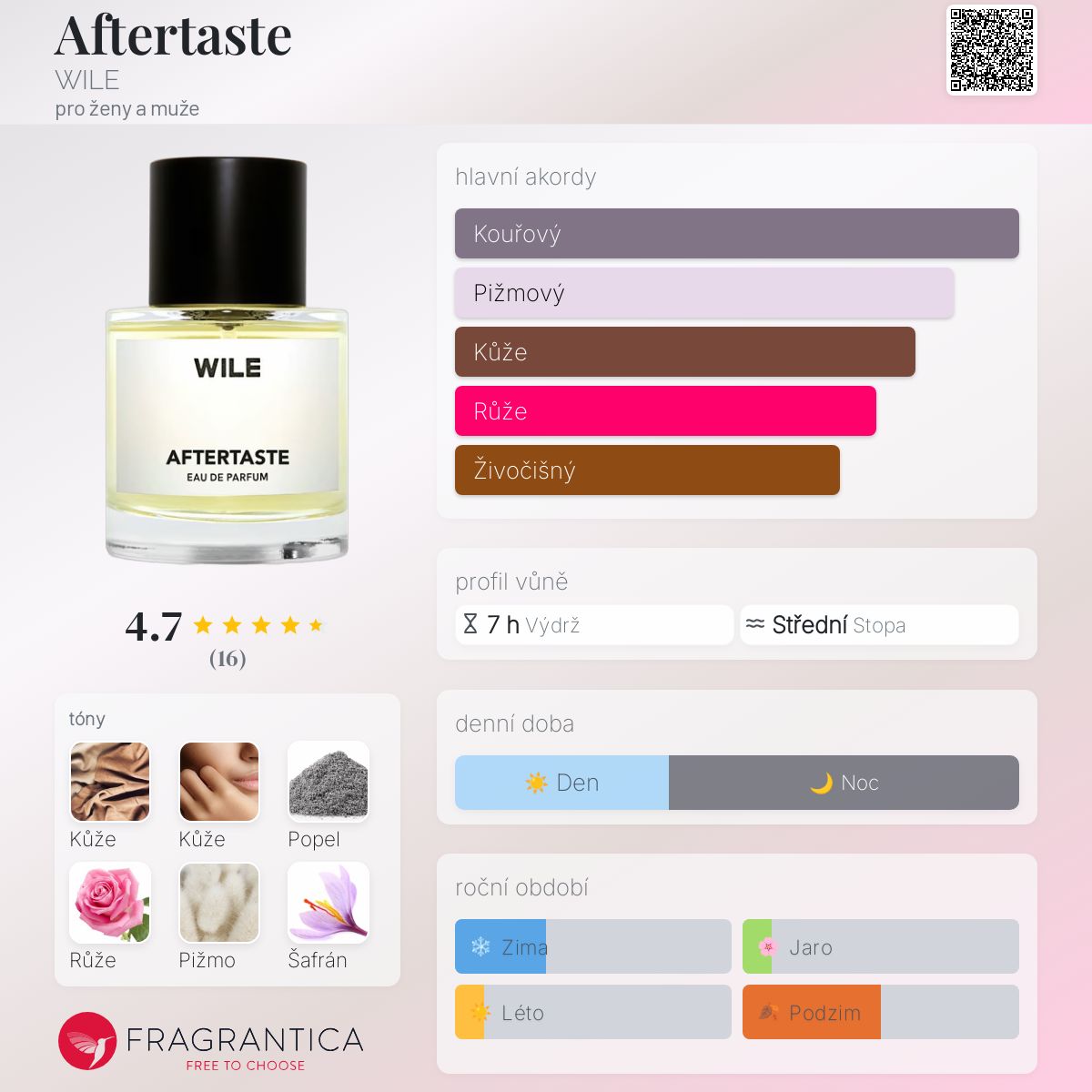 Aftertaste podle WILE je Floral vůně pro ženy a muže. Aftertaste byl/a uveden/a v roce 2021. "Nosem" za touto vůní je Dan Lang.