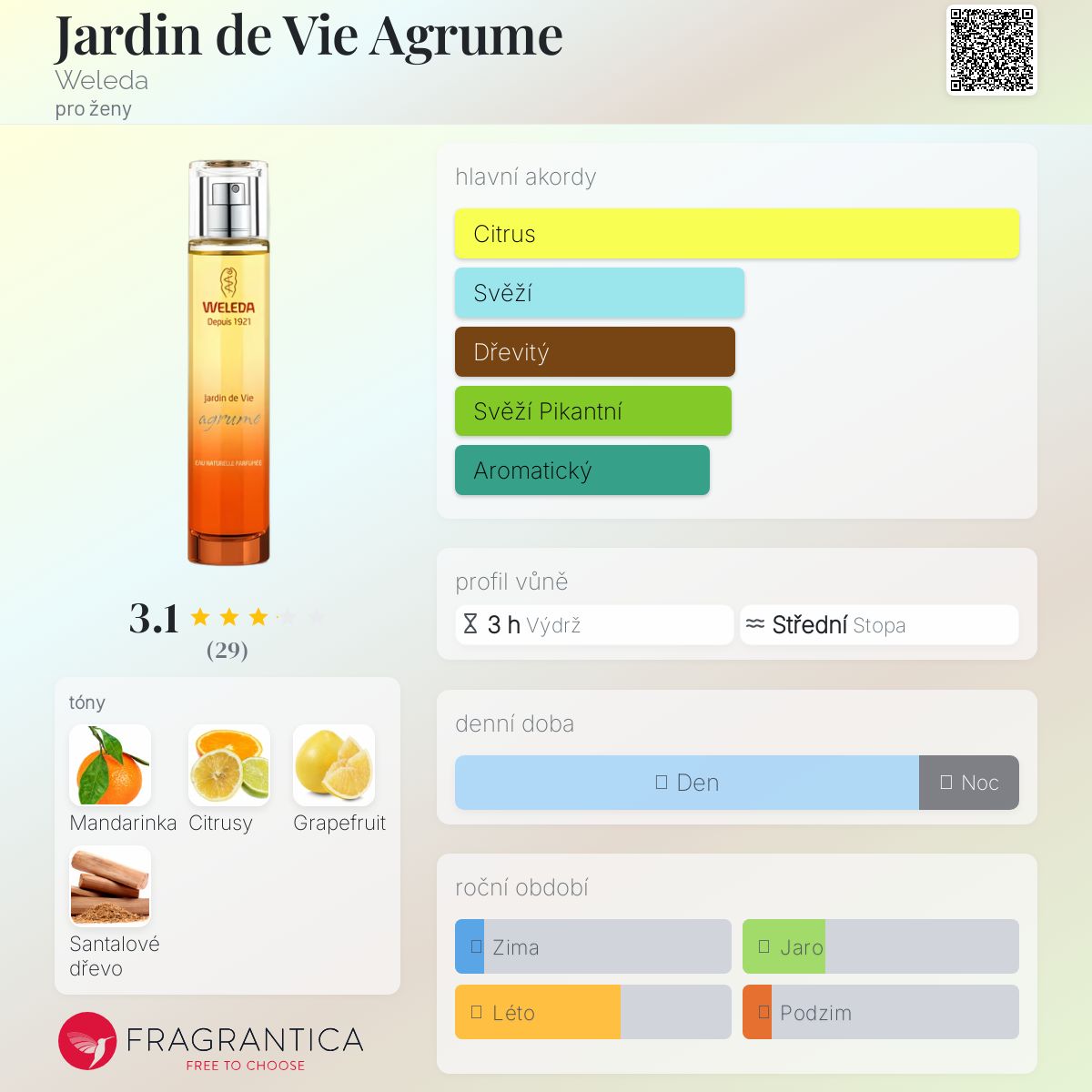 Jardin de Vie Agrume podle Weleda je Citrus Aromatic vůně pro ženy. Jardin de Vie Agrume byl/a uveden/a v roce 2015. "Nosem" za touto vůní je Olivier Biedermann.