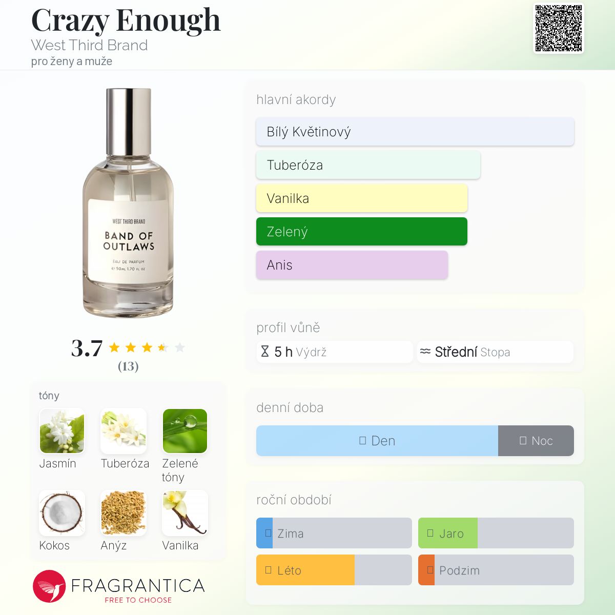Crazy Enough podle West Third Brand je Floral vůně pro ženy a muže. Crazy Enough byl/a uveden/a v roce 2016. "Nosem" za touto vůní je Michael Loring Probst.