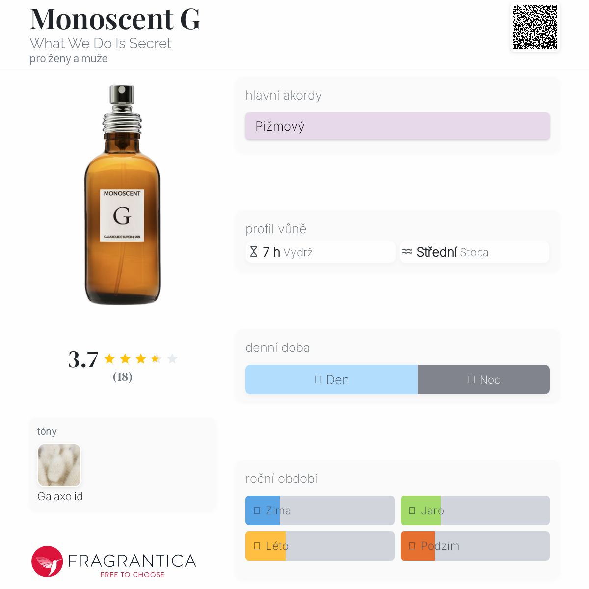 Monoscent G podle What We Do Is Secret je Woody Aromatic vůně pro ženy a muže. Monoscent G byl/a uveden/a v roce 2019.