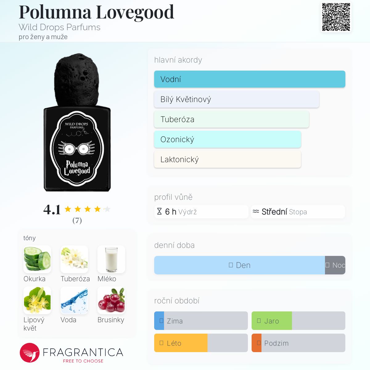 Polumna Lovegood podle Wild Drops Parfums je Floral Green vůně pro ženy a muže. Polumna Lovegood byl/a uveden/a v roce 2022. "Nosem" za touto vůní je Anna Nikishina.