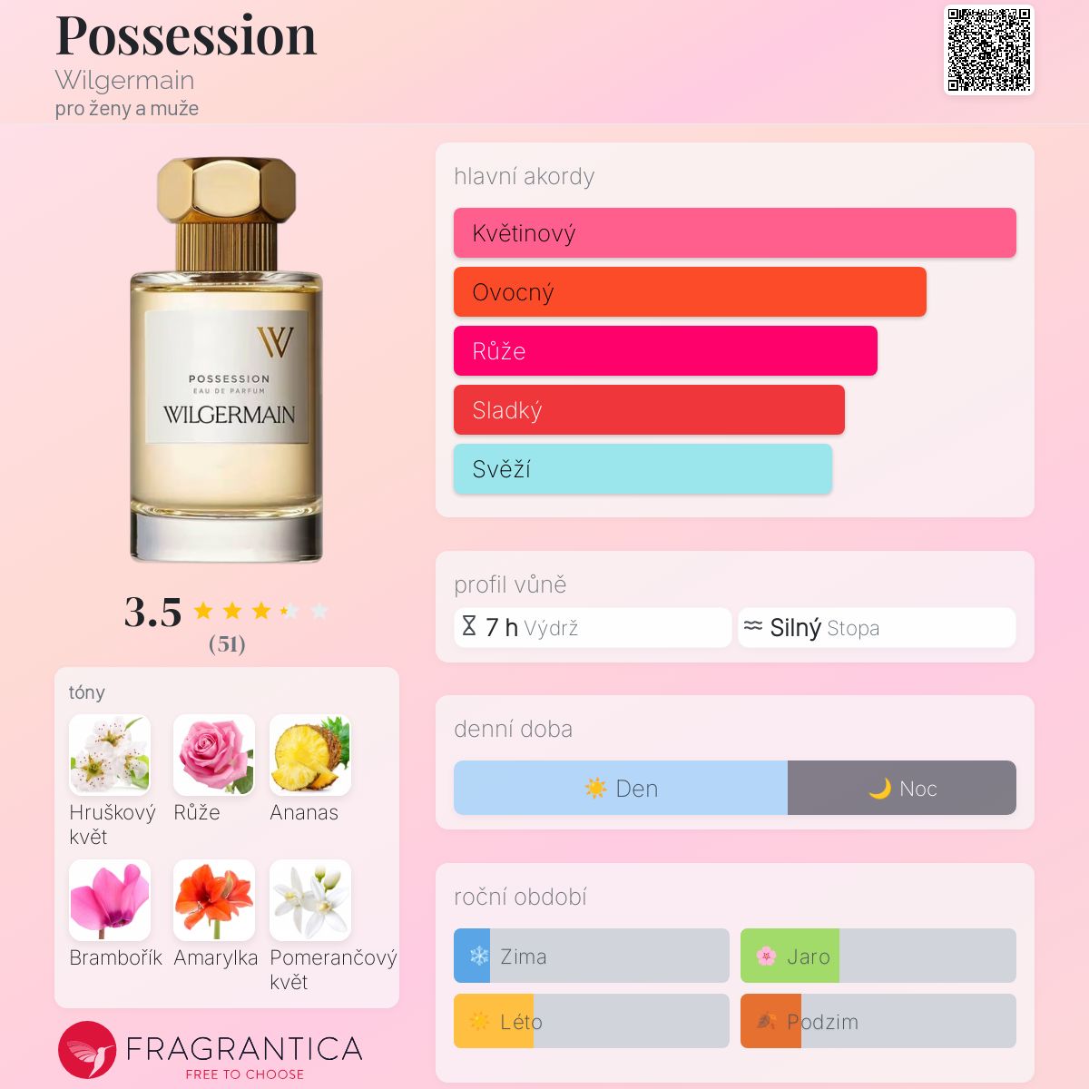 Possession podle Wilgermain je Floral Woody Musk vůně pro ženy a muže. Possession byl/a uveden/a v roce 2020. "Nosem" za touto vůní je Rodrigo Flores-Roux. Vrchní tóny jsou Hruškový květ, Ananas a Brambořík; střední tóny jsouTurecká růže, Amarylka a Pomerančový květ ; základní tóny jsou Pižmo, Dřevo akigala a Jantar (ambra).
