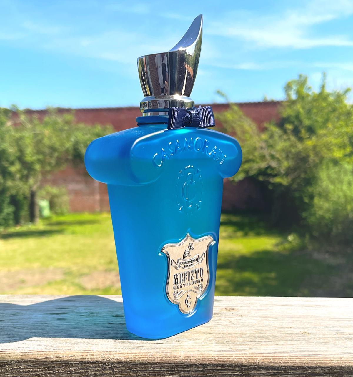 Jestliže původní Mefisto je křišťálově čistý a trochu odměřený (zejména kvůli "kovu" levandule), Mefisto Gentiluomo je vášnivý, obklopující a pronikavý. Je v ní mnohem více pižma a více jantaru, stejně jako mužné fialky (jen někteří mistři vědí, jak tuto notu v pánské vůni zahrát tak, aby zdánlivě jemná květina dodala mužný zvuk). navzdory hojnosti citrusových tónů na začátku ji vnímám spíše jako večerní parfém, kdy voňavá noc vtrhne na území italské terasy.