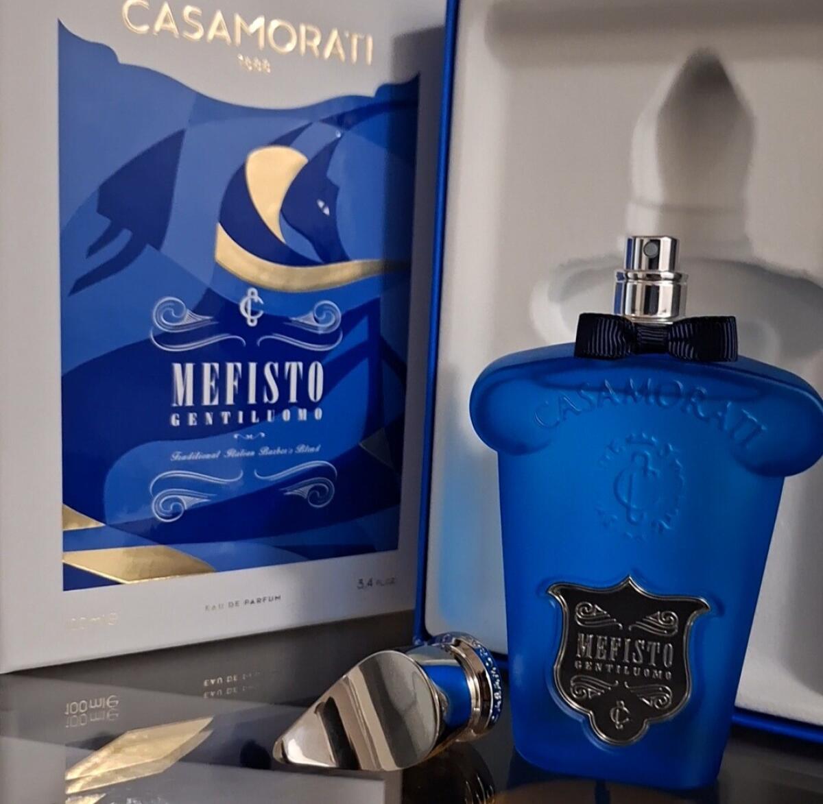 Mefisto Gentiluomo je klasická holičská vůně, svěží a velmi mužná, dokonalá směs vzácných a šťavnatých italských citrusových olejů, květů středomořské levandule a výtažku z kosatce, smíšená se vzácným santalovým a cedrovým dřevem, spočívající na pižmovém jantarovém pozadí.