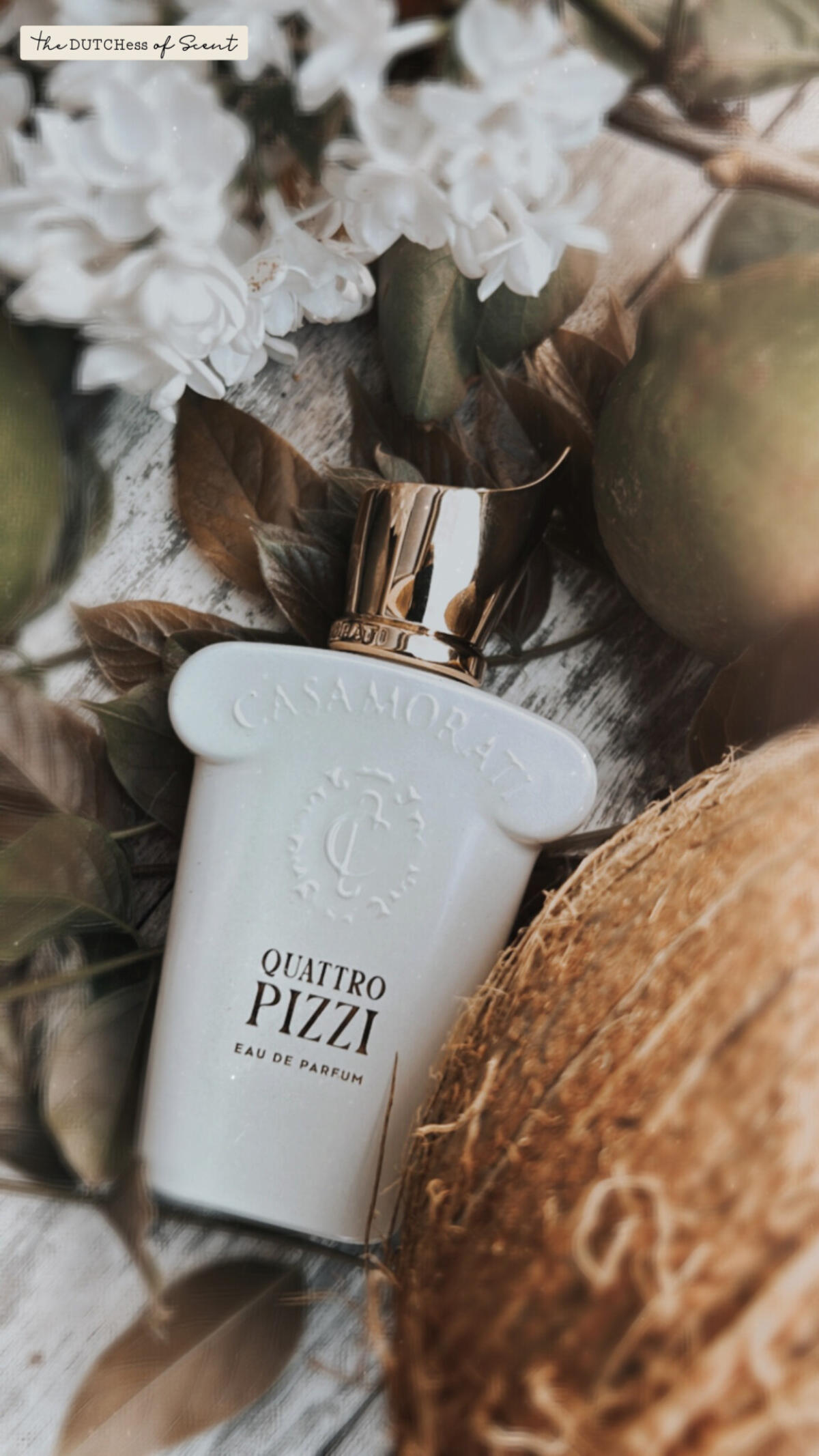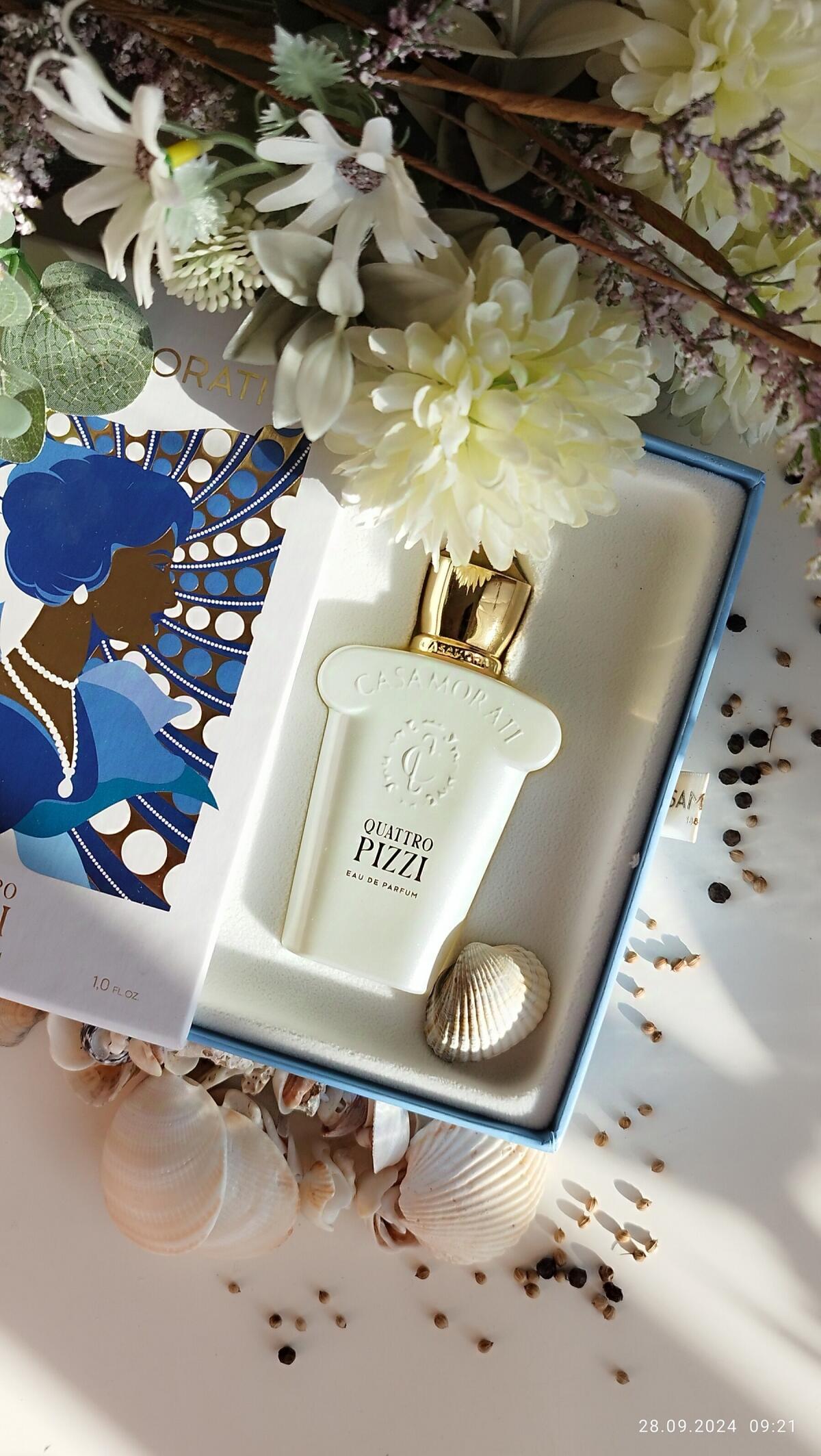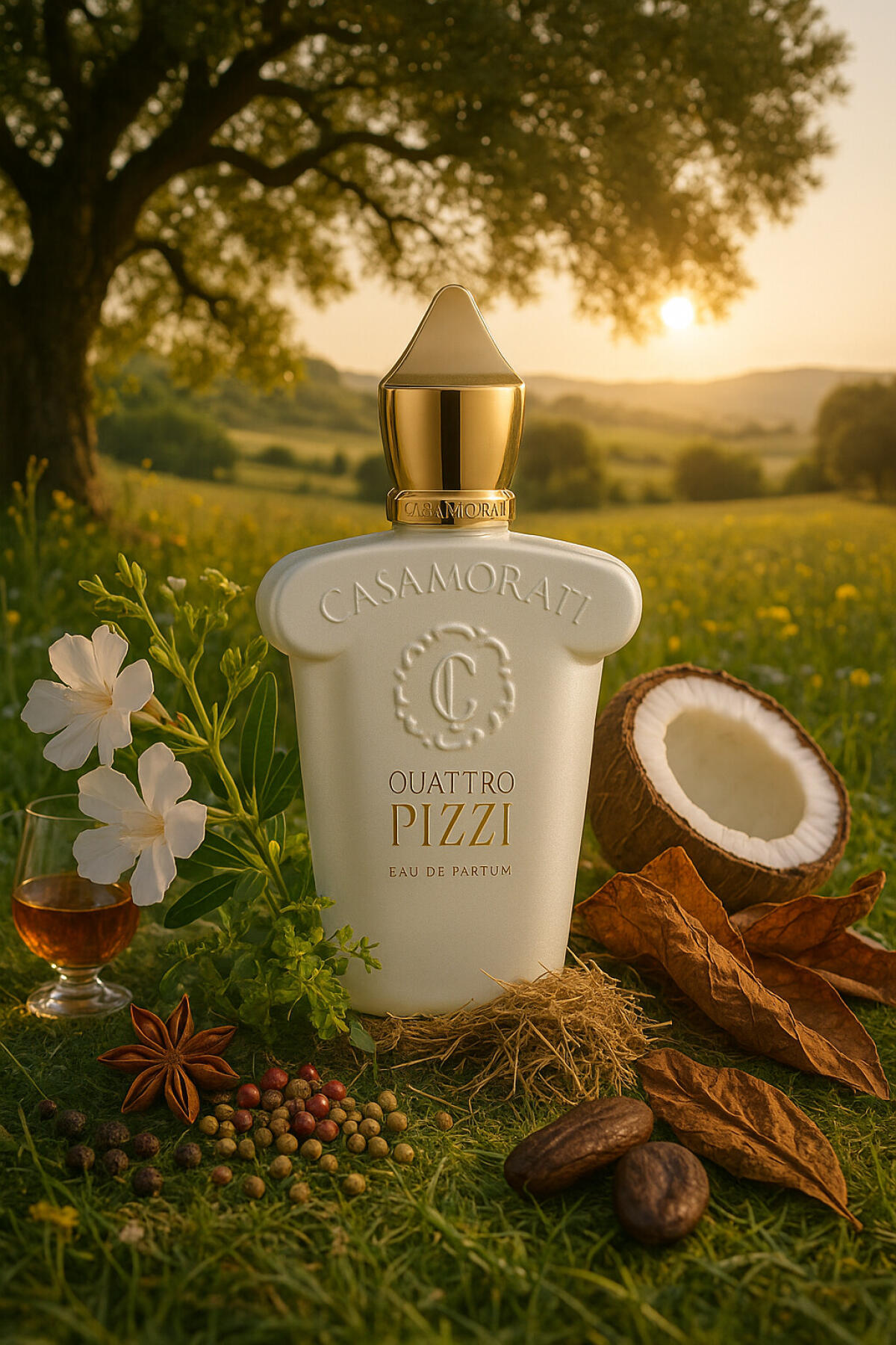 Quattro Pizzi podle Xerjoff je vůně pro ženy a muže. Toto je nová vůně. Quattro Pizzi byl/a uveden/a v roce 2024. "Nosem" za touto vůní je Sofia Bardelli. Vrchní tóny jsou Davana, Rum, Růžový pepř a Koriandr; střední tóny jsouTuberóza a Kokos ; základní tóny jsou Fazole tonka, Seno a Tabákový list.