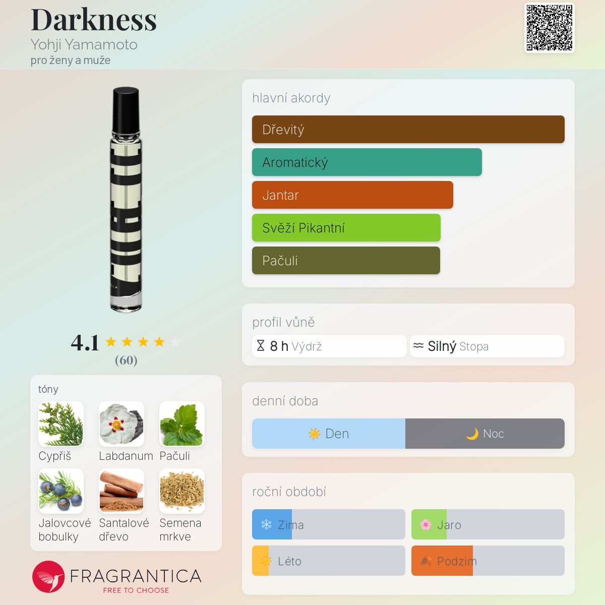 Darkness podle Yohji Yamamoto je Woody Aromatic vůně pro ženy a muže. Darkness byl/a uveden/a v roce 2018.