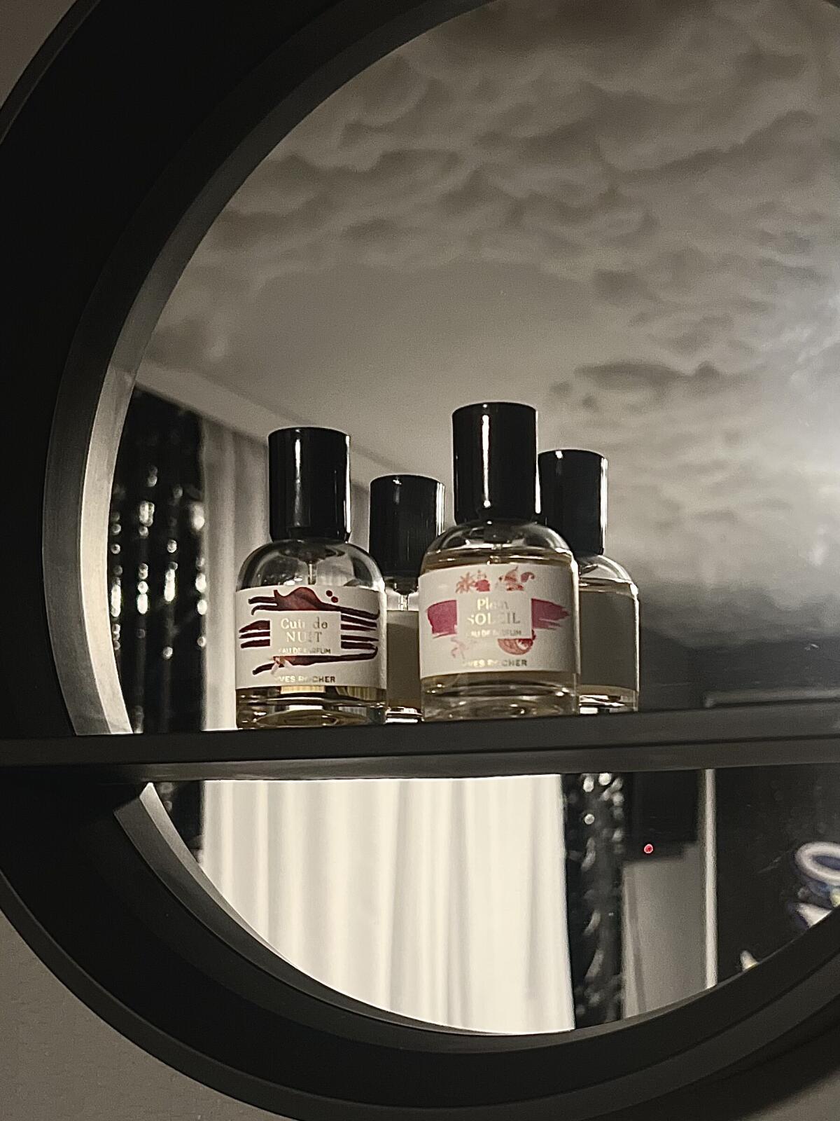 Dnes ho mám na sobě, Cuir de Nuit. Vyzkoušela jsem ho v horkém pozdně letním dni, moc mi toho neřekl.... Kdo ví proč, s chladem jsem ji cítila úplně jinak a zamilovala jsem se do ní!!! Uvedené tóny jsou vanilka, kakao a káva, ale já ji cítím hlavně jako dřevitou, balzamickou vanilku, s něčím ovocným, jako broskev, a něčím "karamelovým"... Ale dobrý, chutný, přírodní karamel, ne ten, co chutná jako spálený cukr! Nejeden člověk si všiml podobnosti mezi tímto parfémem a již nepoužívanou Alchimie od Rochase... K té jsem bohužel neměla to potěšení přivonět, ale po přečtení popisu bych řekla, že se mi skutečně zdá podobná tomu, jak vnímám Cuir de Nuit! 😍 Ach, kupodivu (na poměry parfémů YR) je na mé kůži také dost intenzivní a vytrvalá!!!