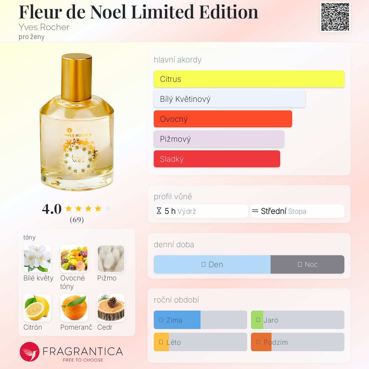 Fleur de Noel Limited Edition podle Yves Rocher je Floral vůně pro ženy. Fleur de Noel Limited Edition byl/a uveden/a v roce 2009. Vrchní tóny jsou Citron amalfi , Pomeranč a Mandarinka; střední tóny jsouBílé květy a Ovocné tóny ; základní tóny jsou Pižmo a Virginský cedr.