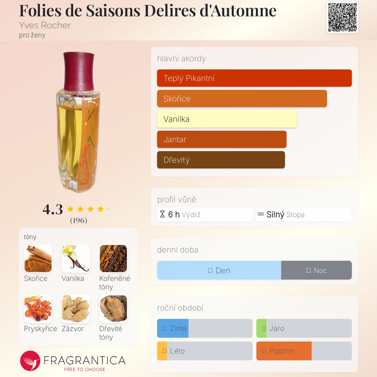 Folies de Saisons Delires d'Automne podle Yves Rocher je Orientální Vanilla vůně pro ženy. Folies de Saisons Delires d'Automne byl/a uveden/a v roce 1997.