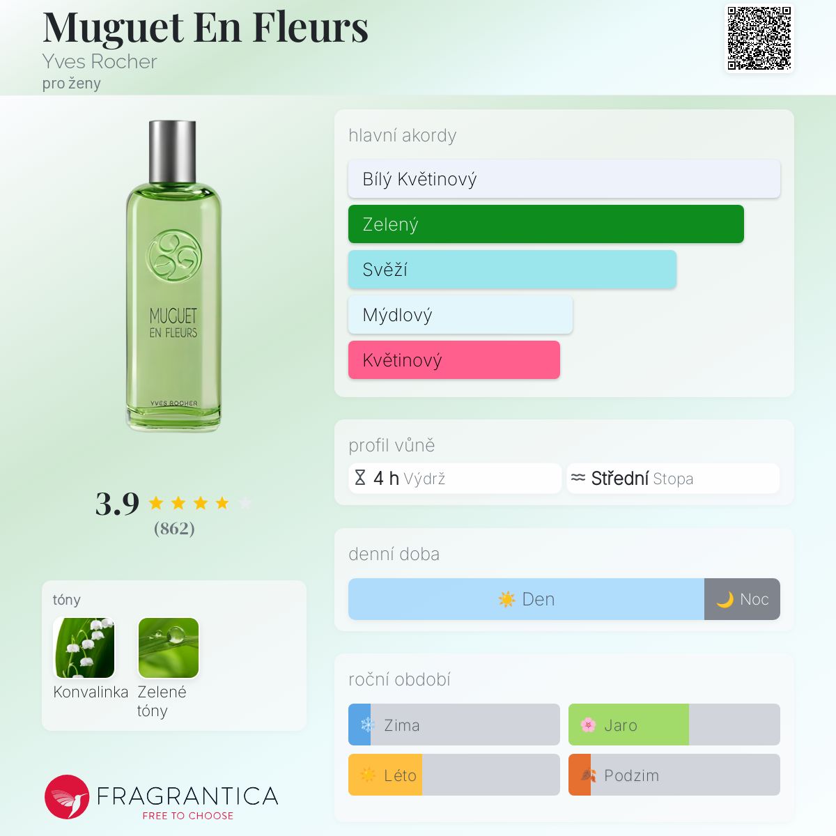 Muguet En Fleurs podle Yves Rocher je Floral Green vůně pro ženy. Muguet En Fleurs byl/a uveden/a v roce 2013. "Nosem" za touto vůní je Sonia Constant.