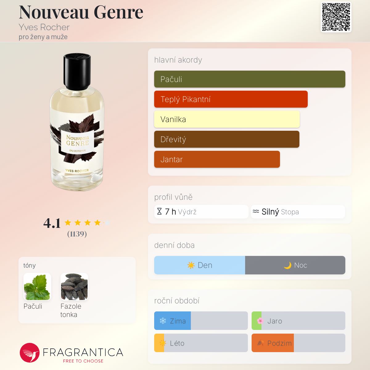 Nouveau Genre podle Yves Rocher je Orientální Woody vůně pro ženy a muže. Nouveau Genre byl/a uveden/a v roce 2019. "Nosem" za touto vůní je Marie Salamagne.
