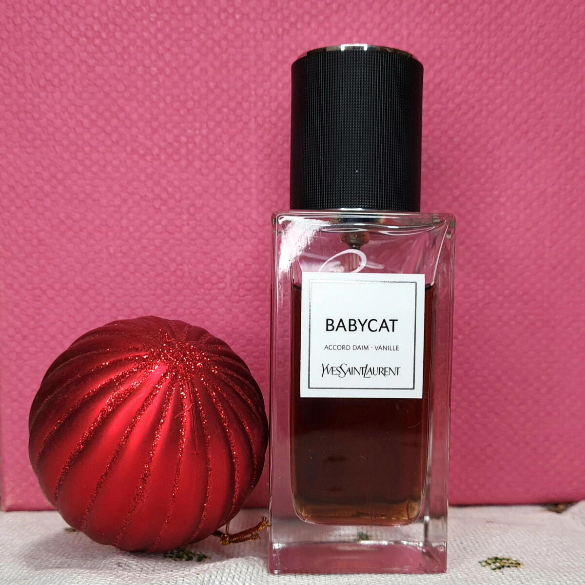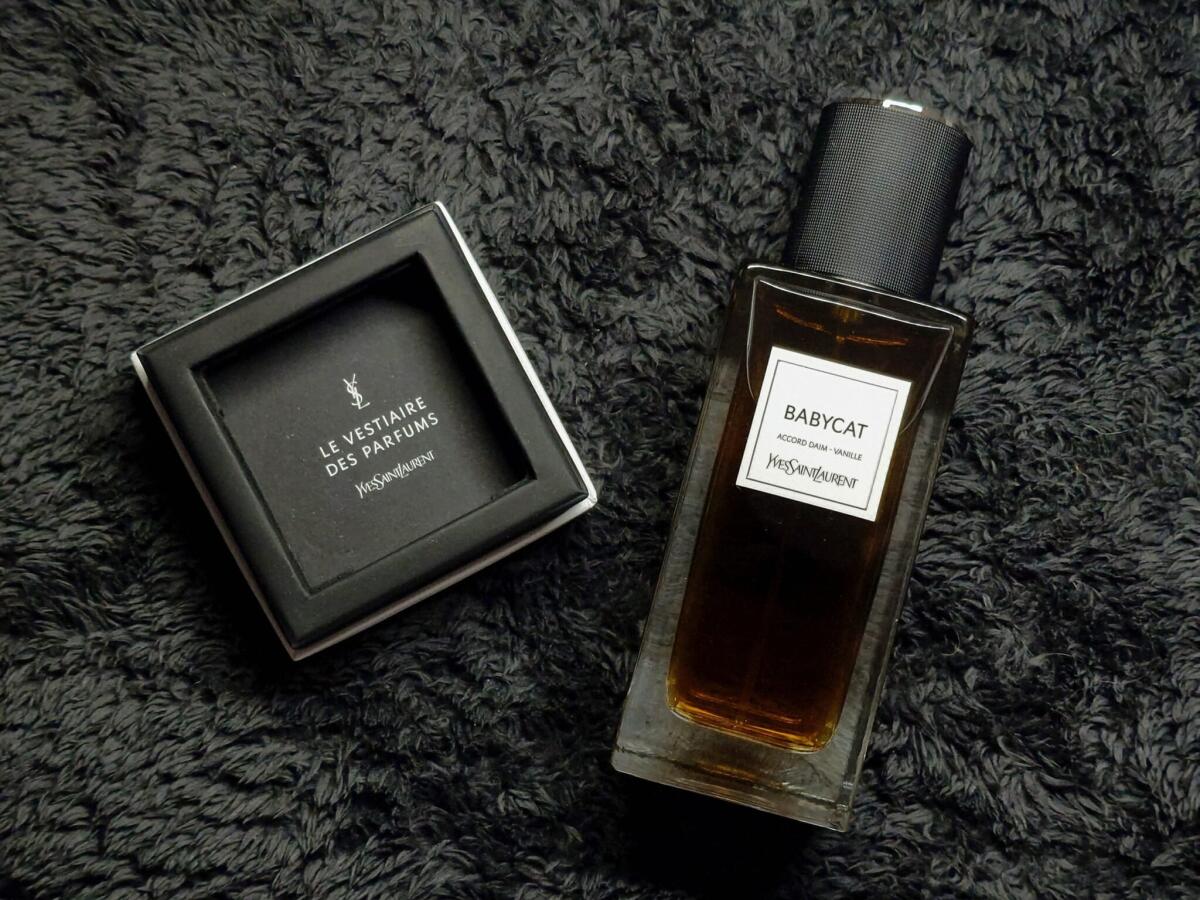 Babycat je ovšem něco jiného. Autorem je Dominique Ropion a tady vidíme jak geniálně pracuje s vůní. Je jasné, že pokud nechcete vytvořit nějakou vanilkovou cukrárnu, musíte dát vanilce nějakou svěžest, třpyt a jiskru. A on má v hlavě parfému nádhernou balzamikovou vůni elemi a opravdu spoustu pepře. Současně cítíte jemné kadidlo, které dodá parfému malinko ostrý a pikantní tón. Ale večírek teprve začíná. Najednou se ocitnete v dílně YSL. Jemnou vůni látek zde dokonale zastoupil semiš, hladký jak večení nebe. Tuhle fázi miluji. Nakonec vanilka zeslábne, jako vzpomínky na krásně modelky. Naprosto geniální.