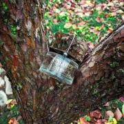 Na úplně poslední polici, mezi zadní stěnou a konstrukcí skříně, byla tato lahvička zabalená ve staré ponožce.