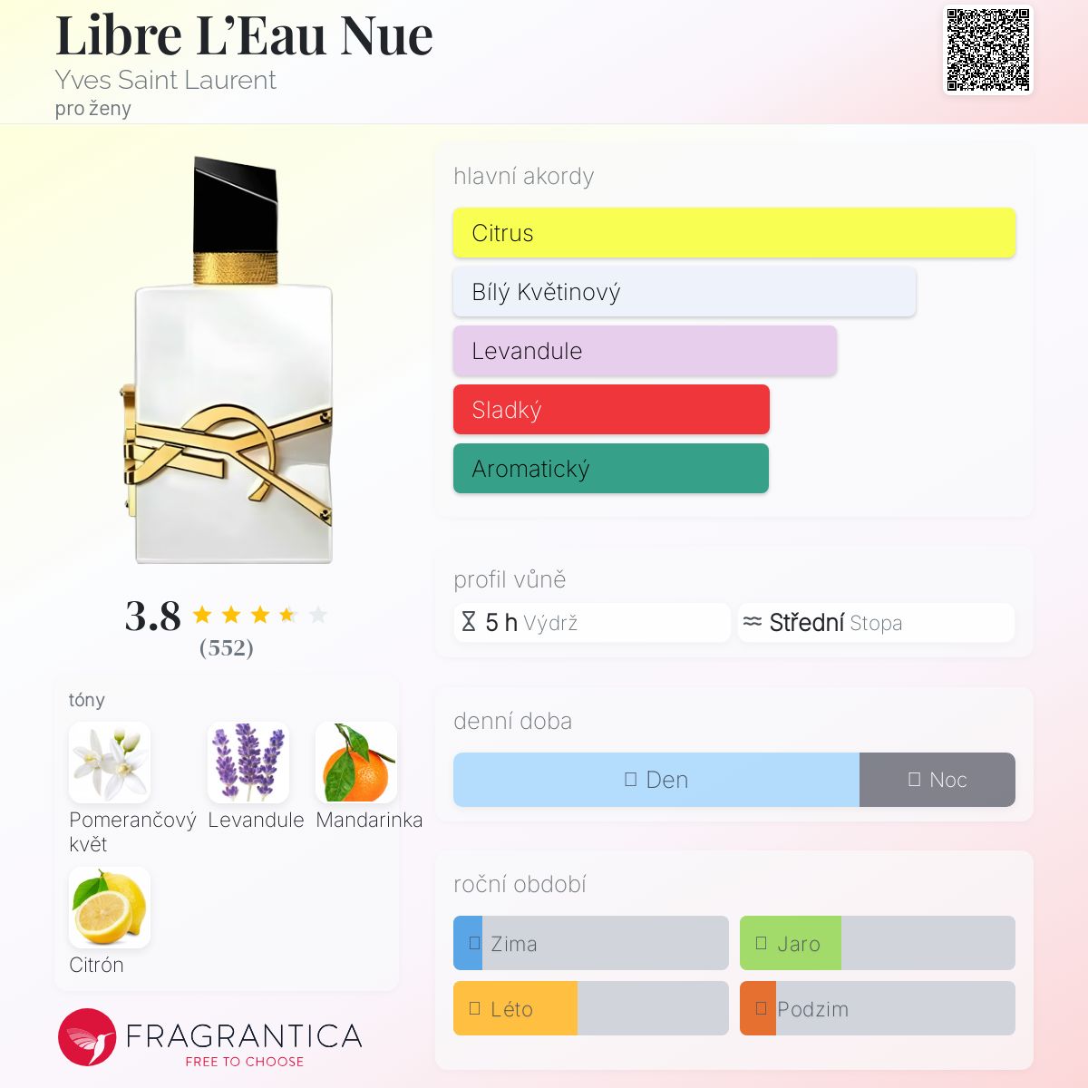 Libre L’Eau Nue podle Yves Saint Laurent je Citrus Aromatic vůně pro ženy. Toto je nová vůně. Libre L’Eau Nue byl/a uveden/a v roce 2025. Libre L’Eau Nue byl/a vytvořen/a Anne Flipo a Carlos Benaïm. Vrchní tóny jsou Mandarinka a Citrón; střední tón jePomerančový květ ; základní tón je Levandule.