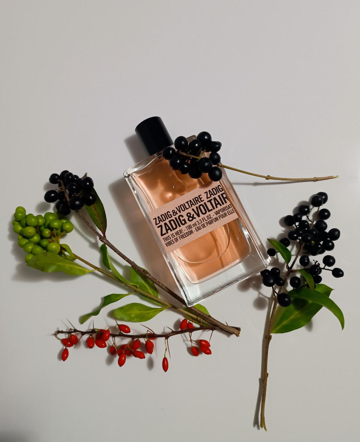 This is Her! Vibes of Freedom podle Zadig & Voltaire je Woody Floral Musk vůně pro ženy. This is Her! Vibes of Freedom byl/a uveden/a v roce 2022. "Nosem" za touto vůní je Sidonie Lancesseur. Vrchní tóny jsou Hruška a Pivoňka; střední tóny jsouRůže a Jasmín ; základní tóny jsou Šlehačka a Kaštan.