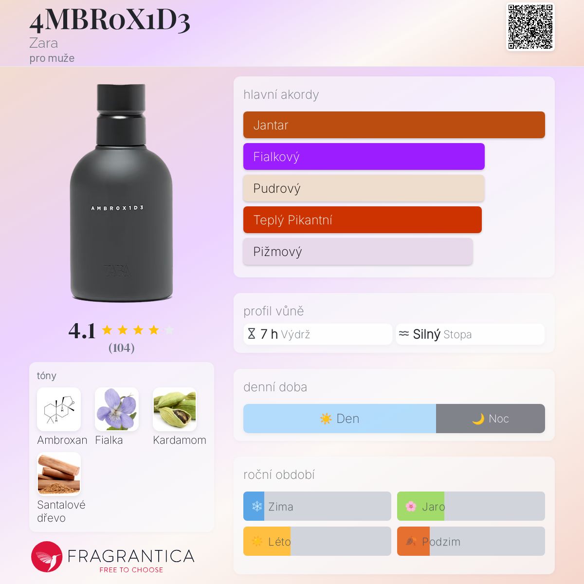 4MBR0X1D3 podle Zara je Orientální Woody vůně pro muže. 4MBR0X1D3 byl/a uveden/a v roce 2019. Vrchní tón je Fialka ; střední tón jeKardamom ; základní tóny jsou Ambroxan a Santalové dřevo.