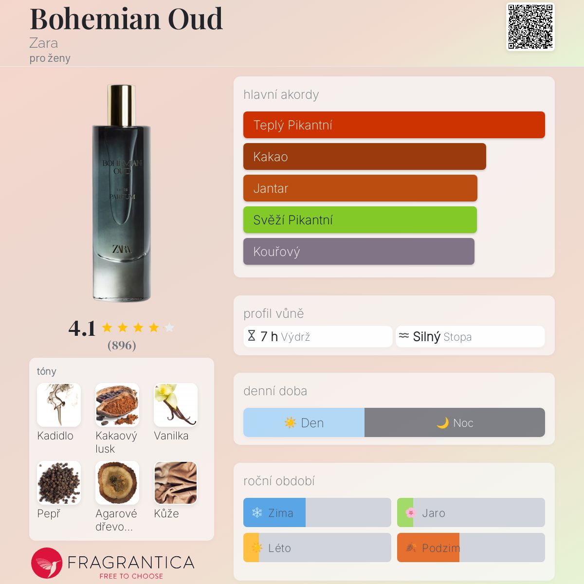 Na vůni Bohemian Oud od Zary nemohu pět dostatečnou chválu. Myslím, že by to nedokázalo ani deset andělských sborů. Ale řekněme, že kdybyste vzali polštářek marshmallowového chmýří, na kterém se vznášeli ti andělé, zamíchali ho do té nejlehčí a nejnadýchanější čokoládové pěny, jakou si dovedete představit, naservírovali do ručně vyřezávané misky z jakéhosi pryskyřičného posvátného dřeva a doplnili ho zápalnou květinovou příměsí jemně opečeného černého pepře, pak byste možná tušili, o čem všichni zpíváme. Bohemian Oud je nádherné potěšení, které je o to fantastičtější, že za necelých 30 dolarů je to zatraceně drahé. Kupte si láhev. Kupte si jich 12. Ta věc je úžasná.