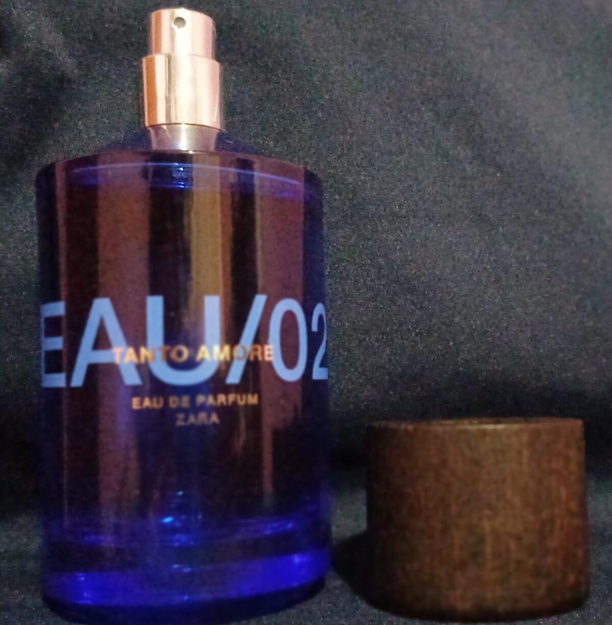 EAU/02 Tanto Amore podle Zara je vůně pro muže. EAU/02 Tanto Amore byl/a uveden/a v roce 2023. Vrchní tóny jsou Krvavý pomeranč, Jalovcové bobulky a Kardamom; střední tóny jsouKosatec, Levandule, Šalvěj a Pepř ; základní tóny jsou Cedr, Vanilka, Pačuli a Vetiver.