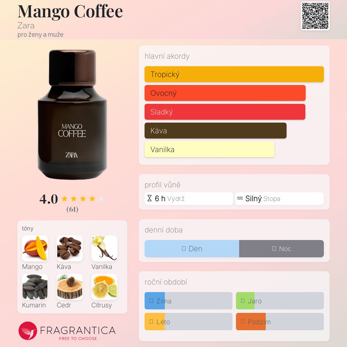 Mango Coffee podle Zara je Aromatic Fruity vůně pro ženy a muže. Toto je nová vůně. Mango Coffee byl/a uveden/a v roce 2025.