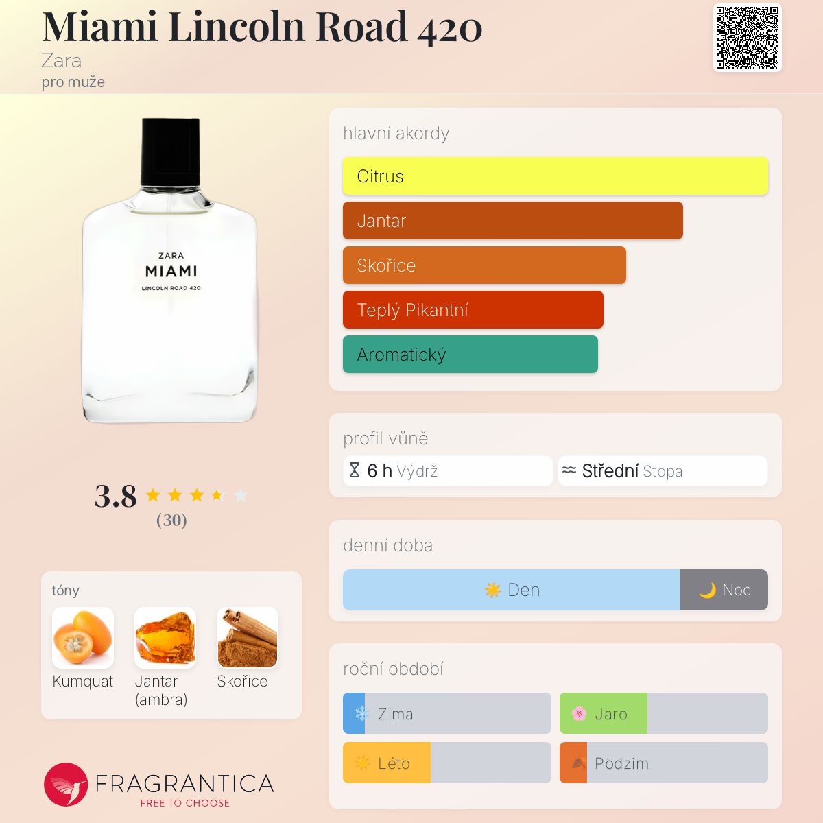 Miami Lincoln Road 420 podle Zara je Orientální Spicy vůně pro muže. Toto je nová vůně. Miami Lincoln Road 420 byl/a uveden/a v roce 2024. Vrchní tón je Skořice ; střední tón jeKumquat ; základní tón je Jantar (ambra).