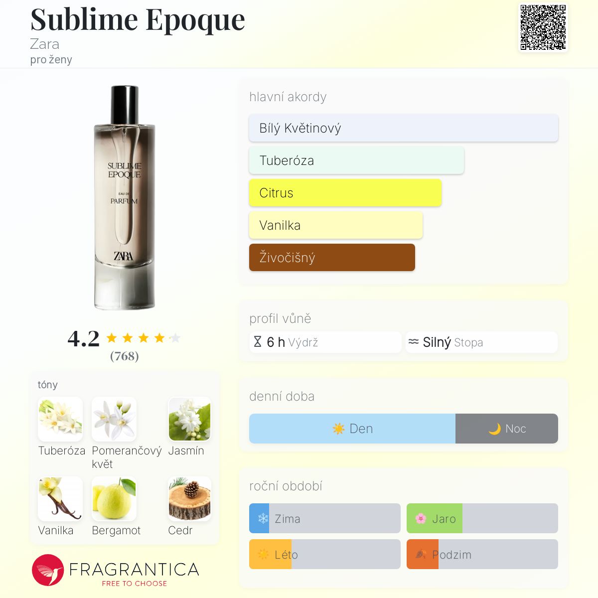 Sublime Epoque podle Zara je Floral vůně pro ženy. Sublime Epoque byl/a uveden/a v roce 2021. Vrchní tón je Bergamot ; střední tóny jsouTuberóza, Pomerančový květ a Jasmín ; základní tóny jsou Vanilka a Cedr.