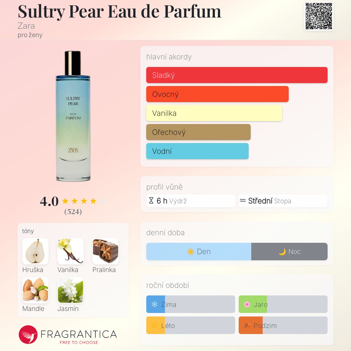 Konečně vůně od Zary, pro kterou sedí název i profil vůně, je to opravdu Sultry Pear!