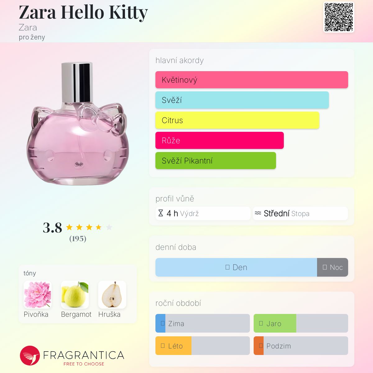 Zara Hello Kitty podle Zara je Floral Fruity vůně pro ženy. Vrchní tón je Bergamot ; střední tón jeHruška ; základní tón je Pivoňka.