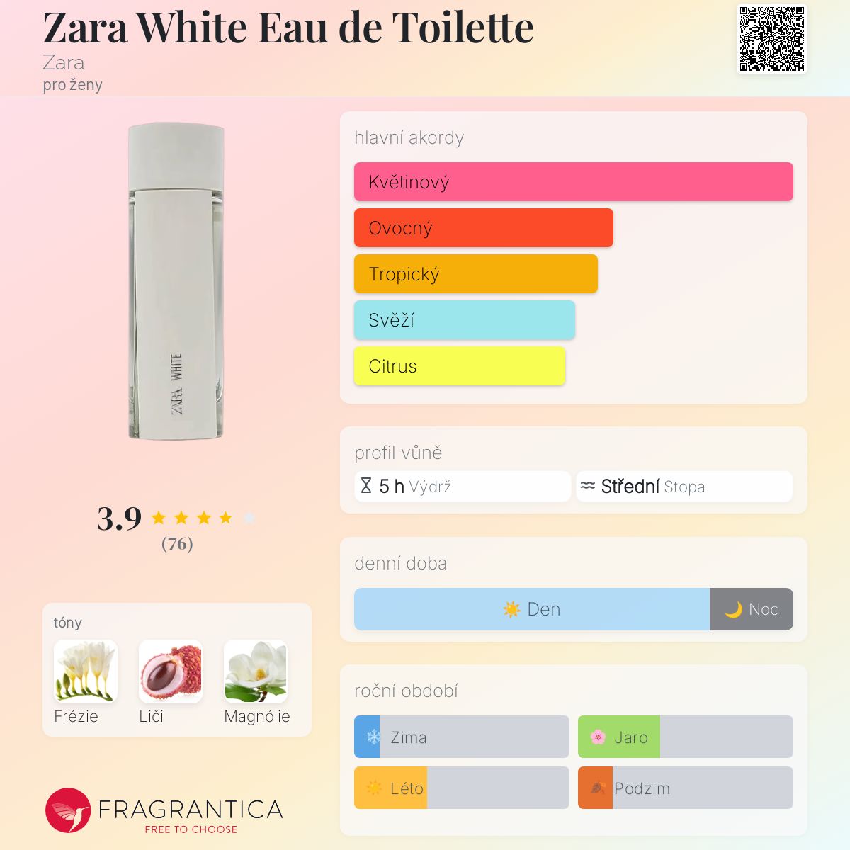 Zara White Eau de Toilette podle Zara je Floral vůně pro ženy. Zara White Eau de Toilette byl/a uveden/a v roce 2020. Vrchní tón je Liči ; střední tón jeFrézie ; základní tón je Magnólie.
