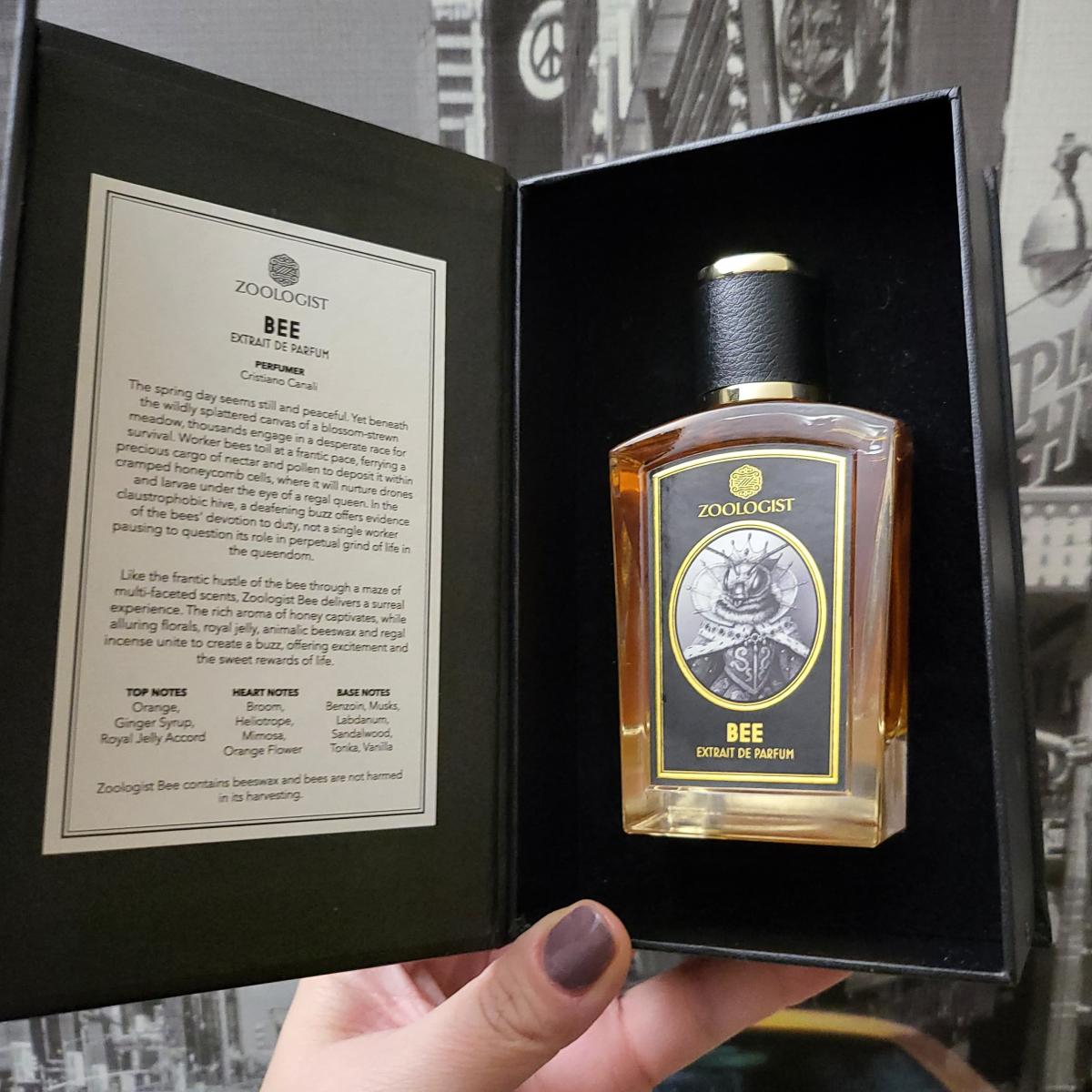 Bee podle Zoologist Perfumes je Orientální Floral vůně pro ženy a muže. Bee byl/a uveden/a v roce 2019. "Nosem" za touto vůní je Cristiano Canali. Vrchní tóny jsou Včelí vosk, Zázvor a Pomeranč; střední tóny jsouMimóza, Janovec, Otočník a Pomerančový květ ; základní tóny jsou Vanilka, Benzoin, Fazole tonka, Santalové dřevo, Pižmo a Labdanum.