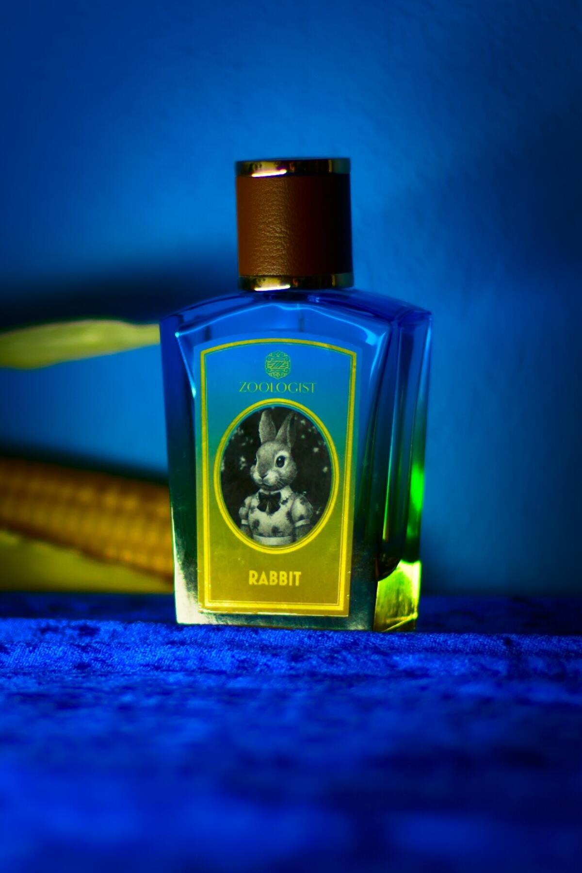 Rabbit podle Zoologist Perfumes je Floral Green vůně pro ženy a muže. Toto je nová vůně. Rabbit byl/a uveden/a v roce 2024. "Nosem" za touto vůní je Fanny Bal. Vrchní tóny jsou Skořice, Zelené listí, Jablko a Bergamot; střední tóny jsouMrkev, Jetel, Fialka a Jasmín ; základní tóny jsou Šušenka, Vanilka, Seno, Bílá mandle, Pižmo a Pačuli.
