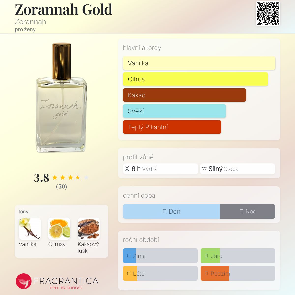Zorannah Gold podle Zorannah je Orientální Vanilla vůně pro ženy. Zorannah Gold byl/a uveden/a v roce 2020. Vrchní tón je Citrusy ; střední tón jeKakaový lusk ; základní tón je Vanilka.
