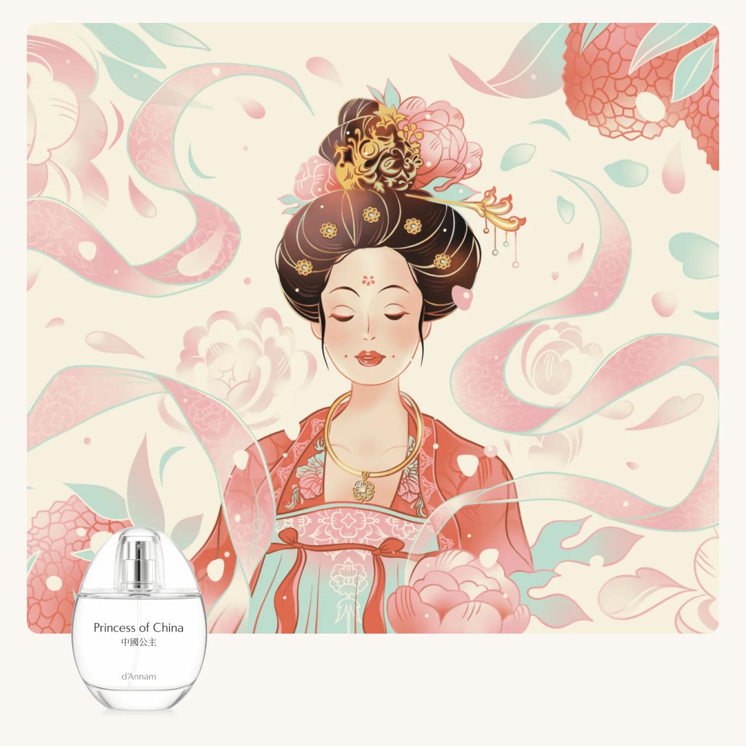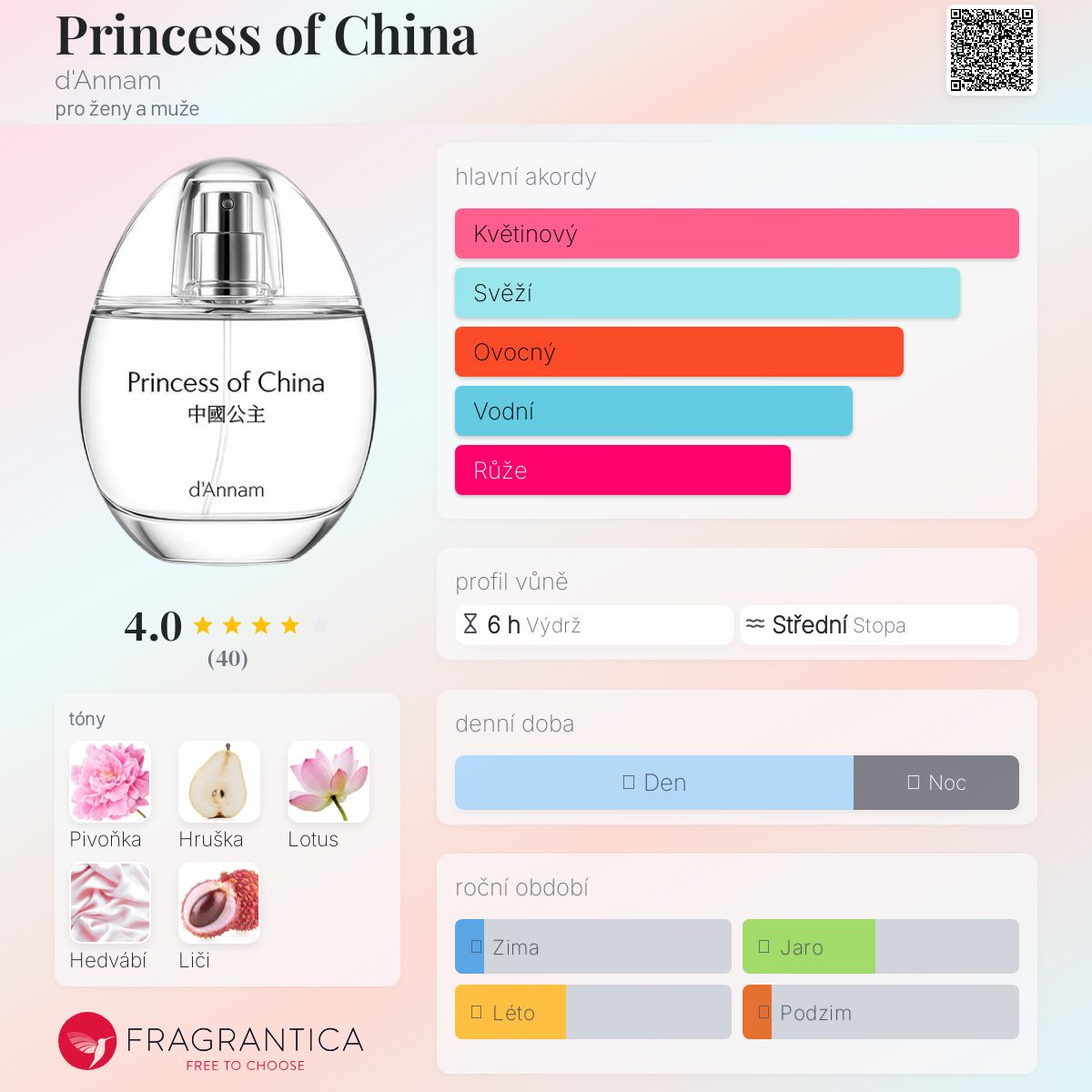 Princess of China podle d'Annam je Floral Fruity vůně pro ženy a muže. Toto je nová vůně. Princess of China byl/a uveden/a v roce 2025. "Nosem" za touto vůní je Anh Ngo.