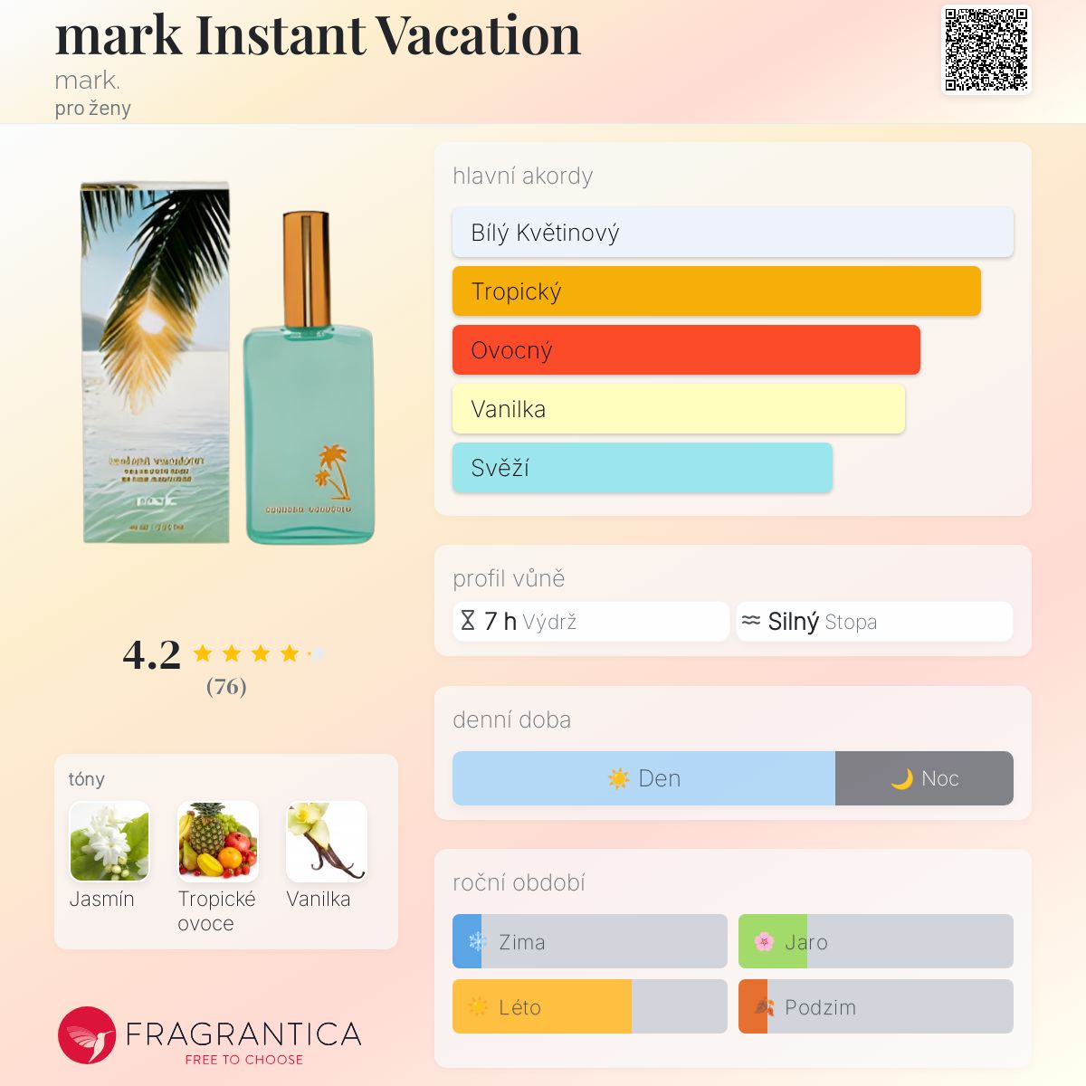 mark Instant Vacation podle mark. je Floral Fruity vůně pro ženy. mark Instant Vacation byl/a uveden/a v roce 2007.